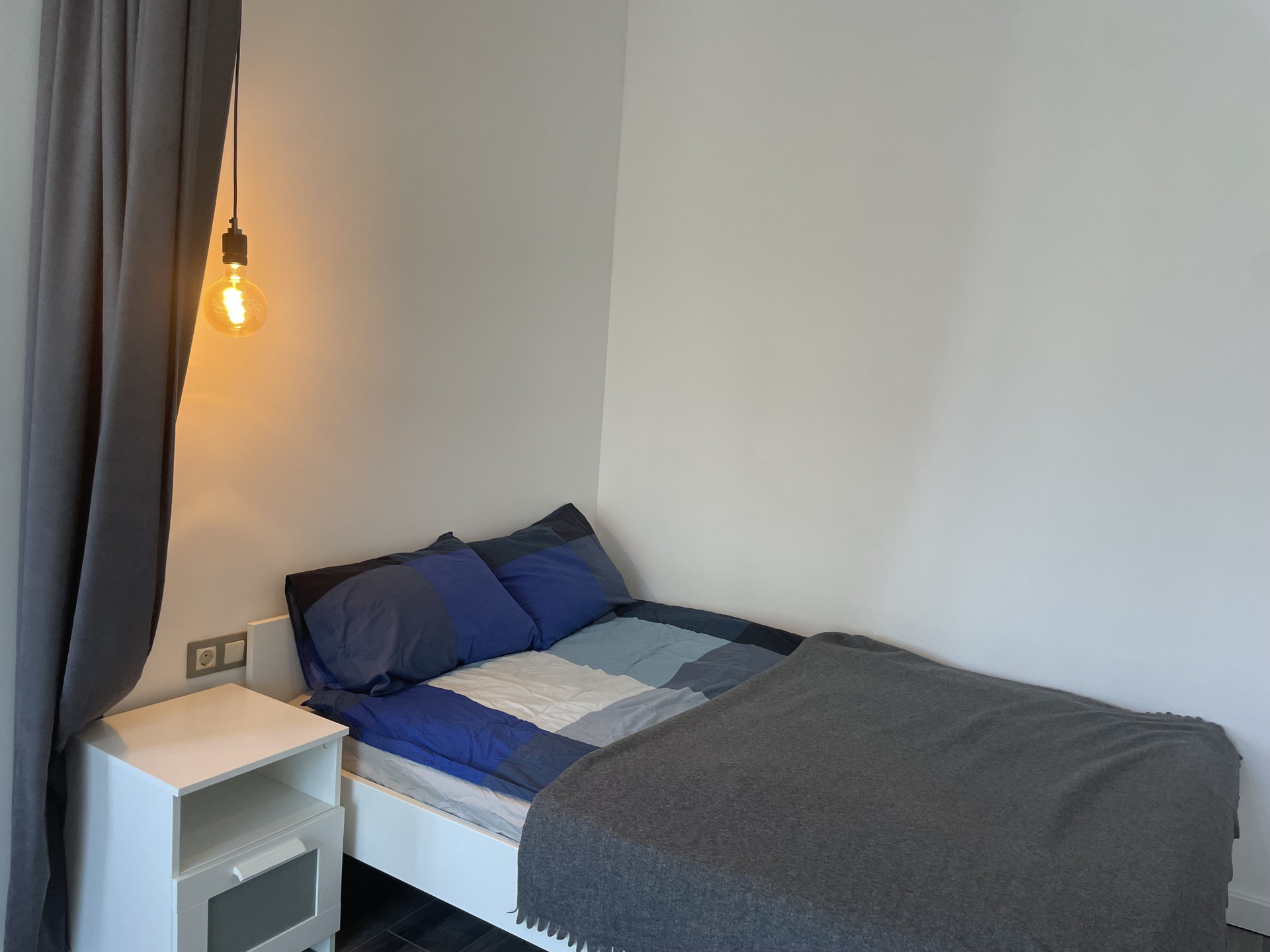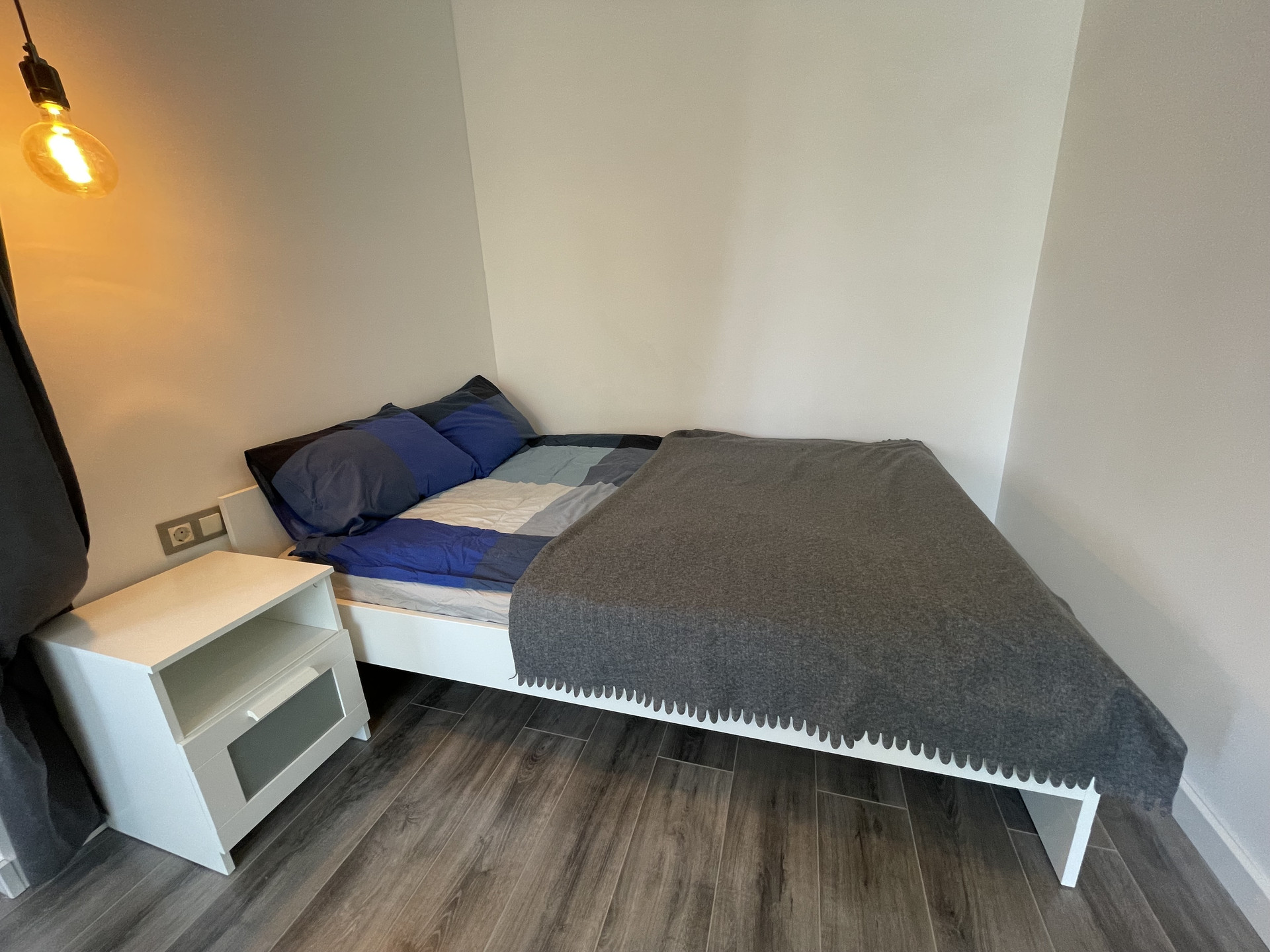 Спальня с двуспальной кроватью ортопедическим матрасом, прикроватной тумбой и комодом;