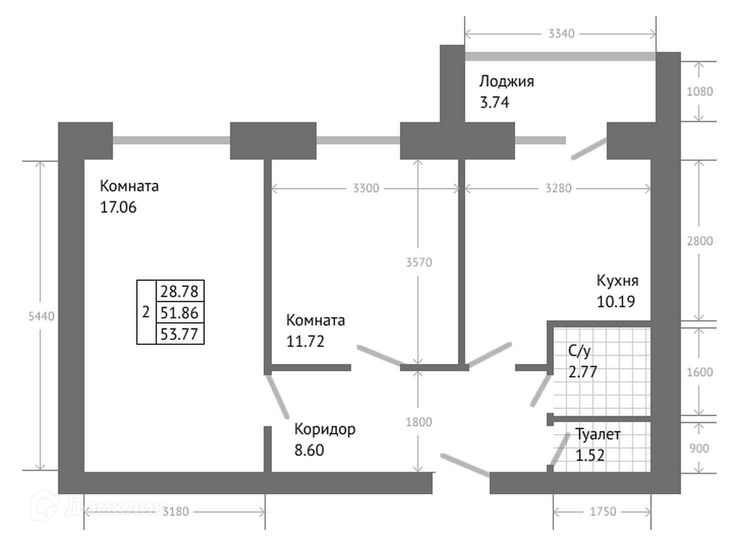 Общая площадь 55.6 м2