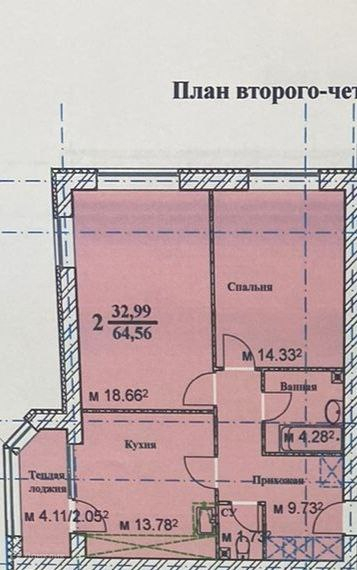 Общая площадь 64.56 м2