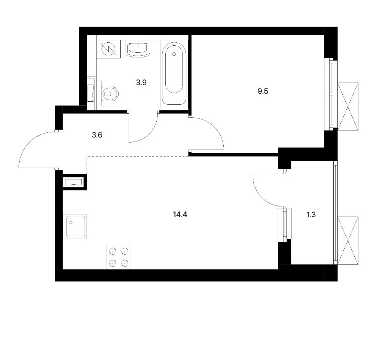 Жилая площадь 9.5 м2