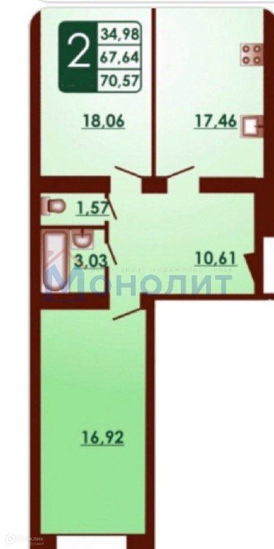 Общая площадь 70.57 м2