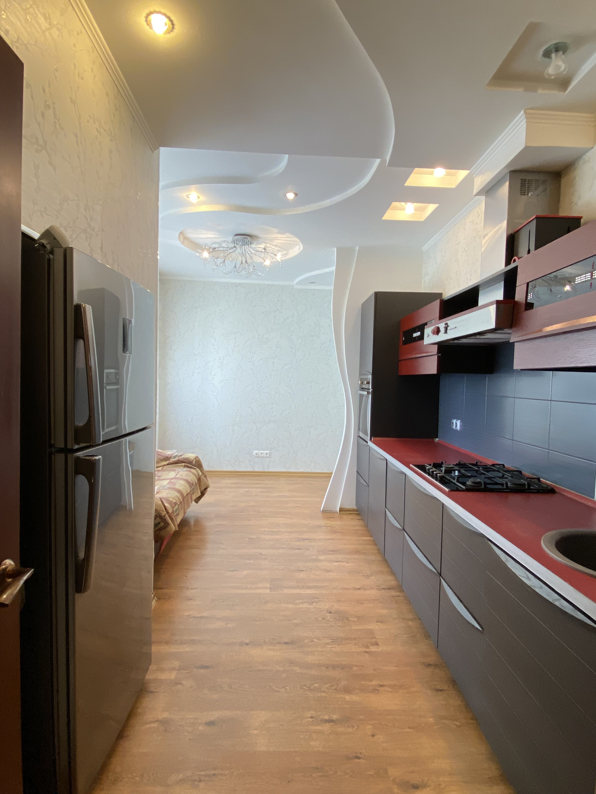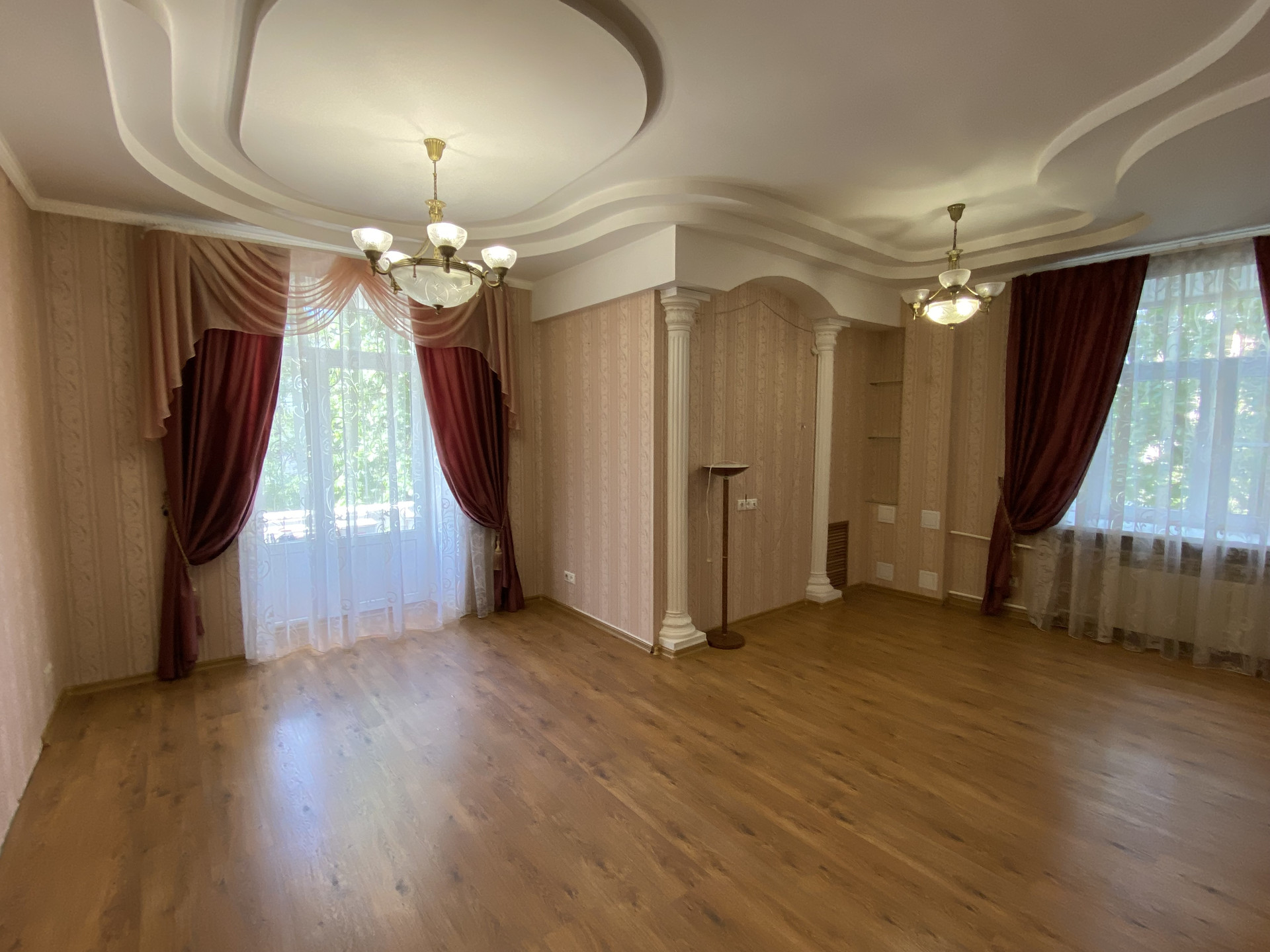 В подарок будущему собственнику остается кухонный гарнитур, люстры, гардины, шторы, кондиционеры.