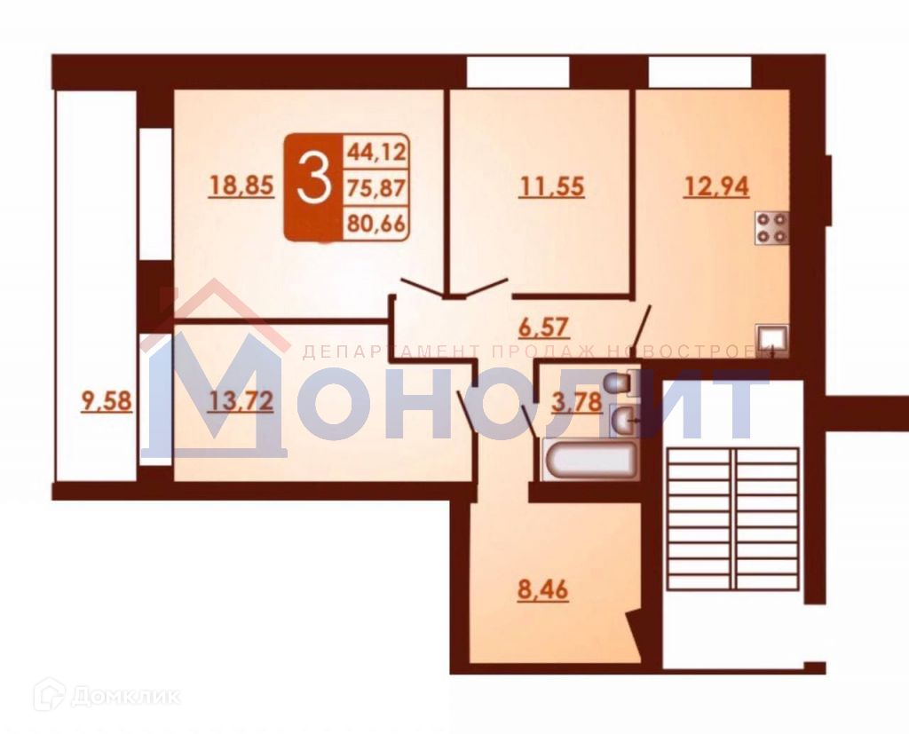 Общая площадь 80.66 м2