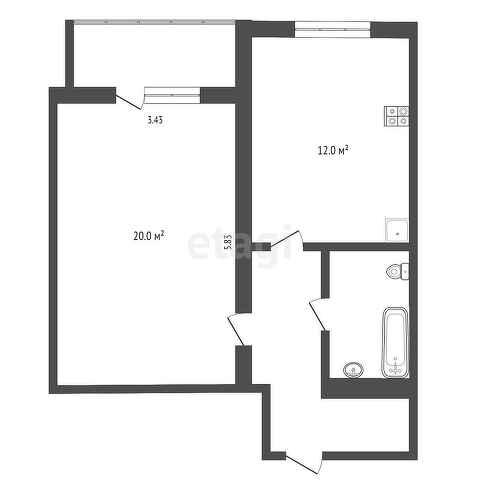 Общая площадь 43.3 м2