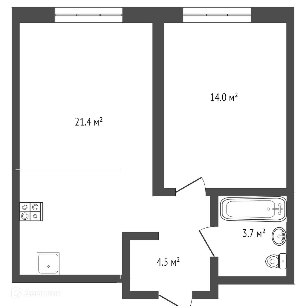 - Удобная планировка! Просторная кухня-гостинная 21.4м