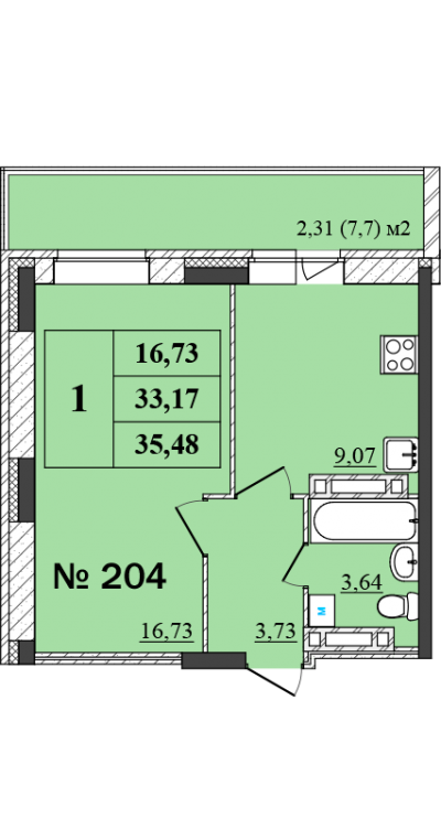 Общая площадь 35.48 м2