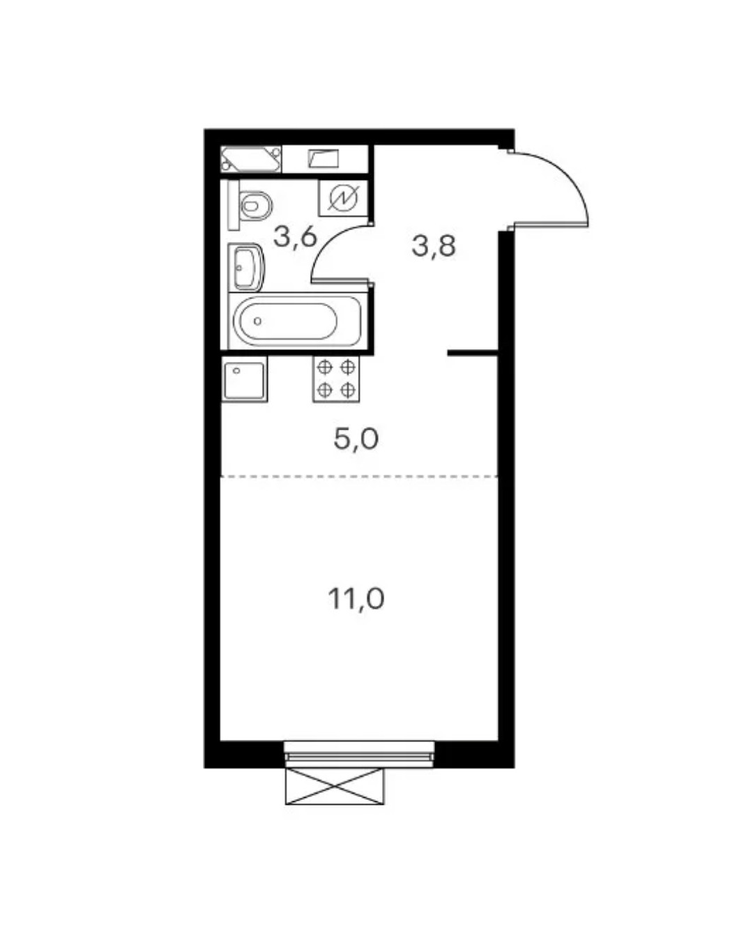 Общая площадь 23,1. Квартира находится во 2-ом (среднем) подъезде на 13 этаже.