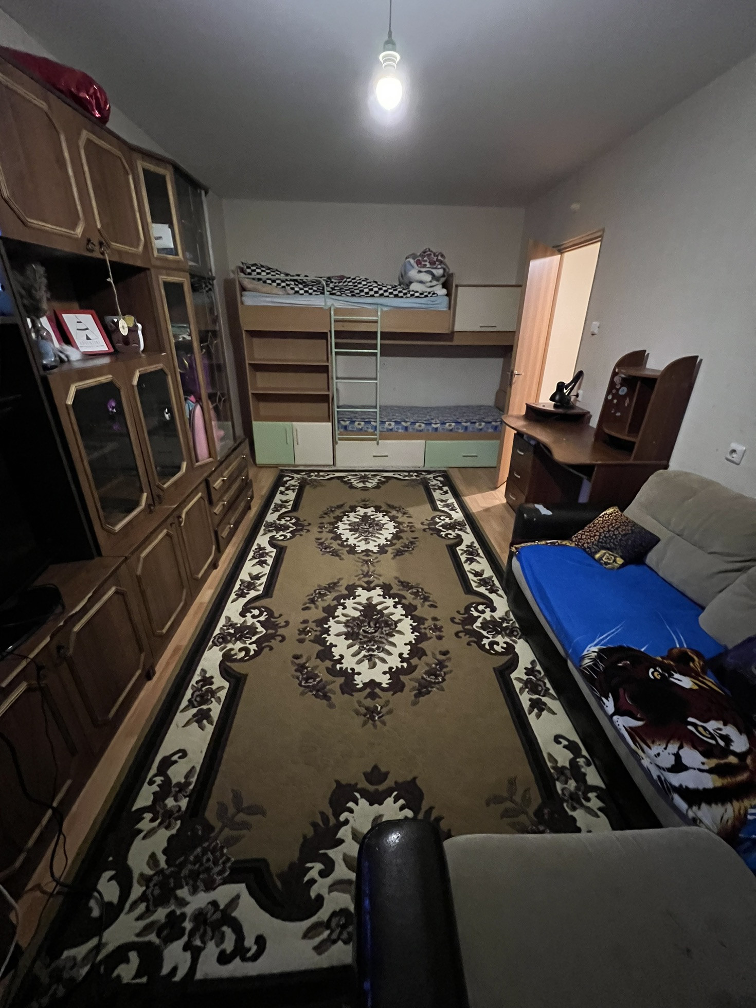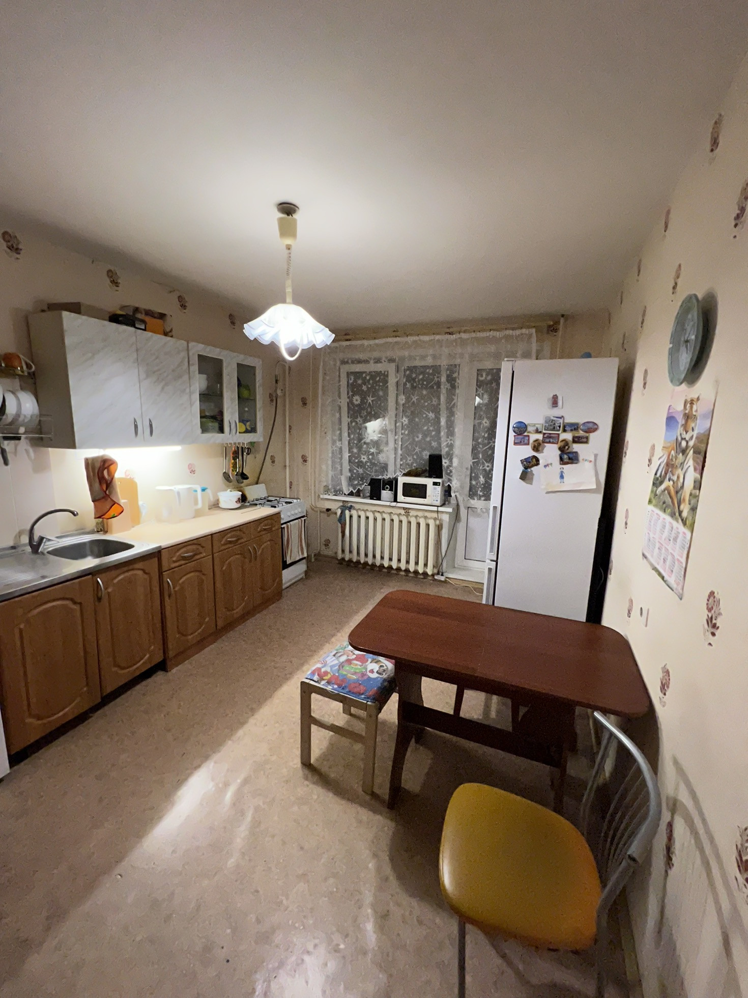•Продается трёхкомнатная квартира в хорошем состоянии, комнаты раздельные, тамбур на три квартиры. Большая застекленная лоджия, выход на которую есть из кухни и из спальни. Также в квартире есть удобная кладовая, где на данный момент размещена стиральная машина. Сан. узел раздельный, в плитке. Окна выходят на обе стороны дома. Во дворе есть детская площадка и стоянка для автомобилей.