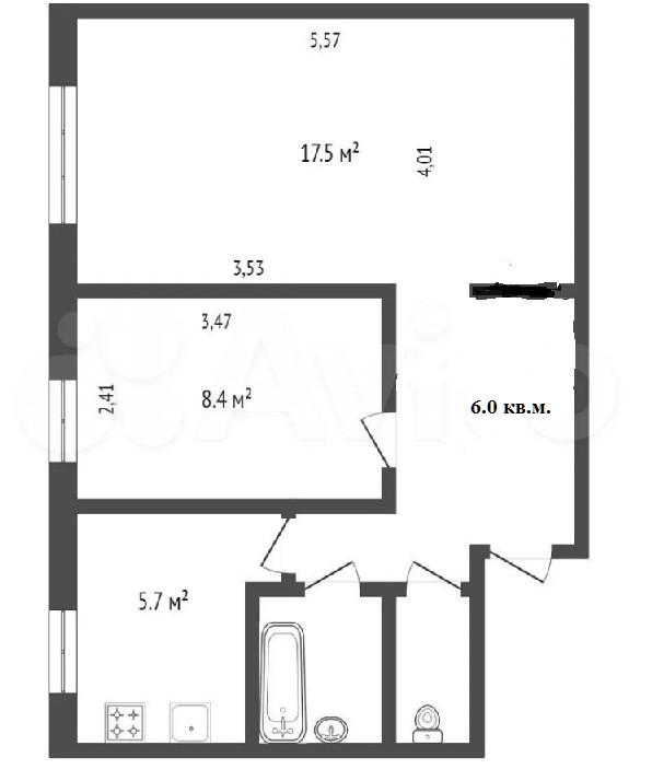 Общая площадь 41.5 м2