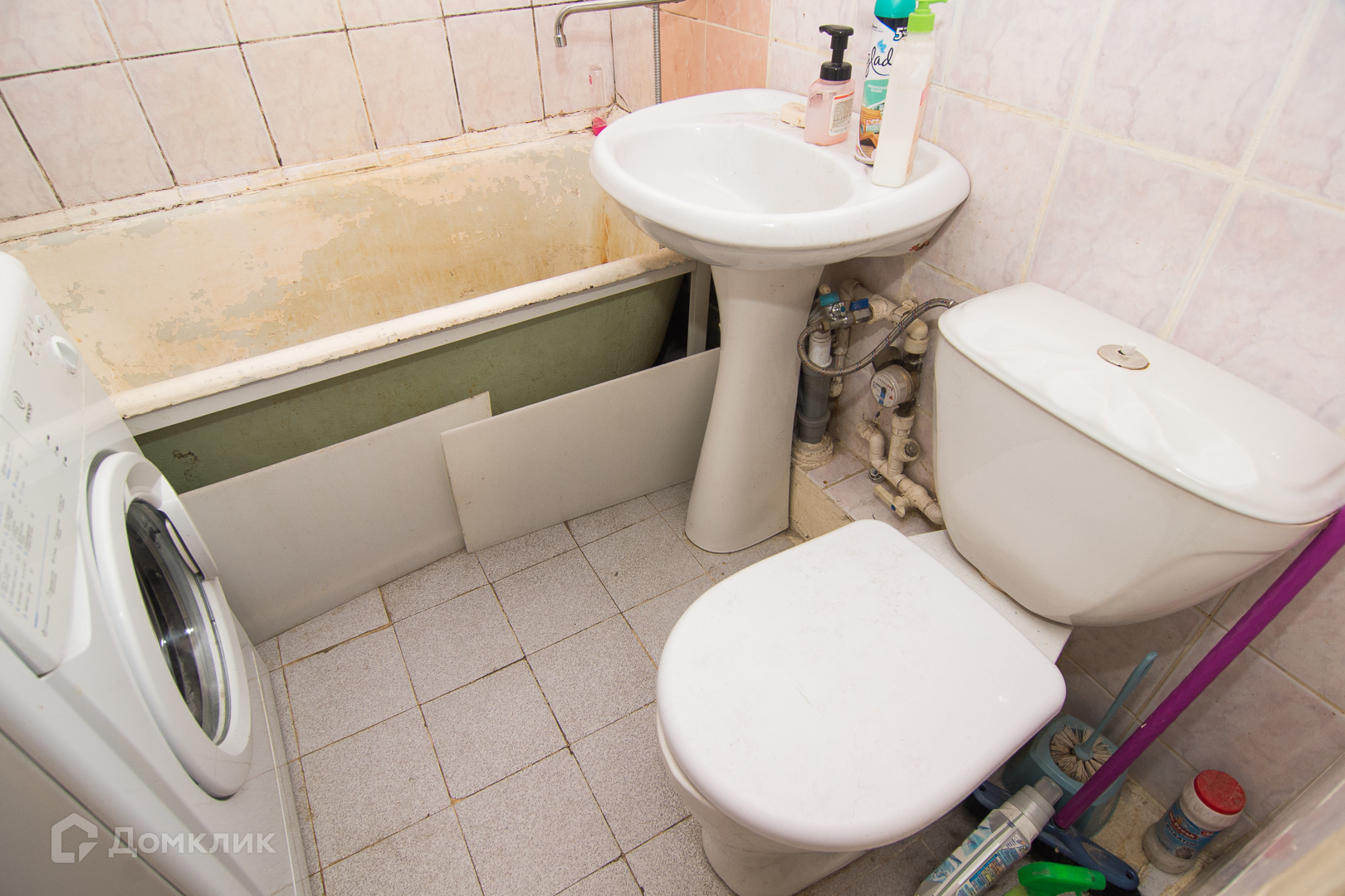 В санузле есть место под стиральную машину.