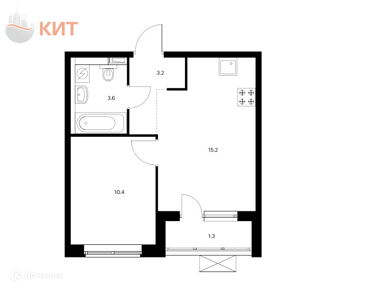 Общая площадь 33.9 м2