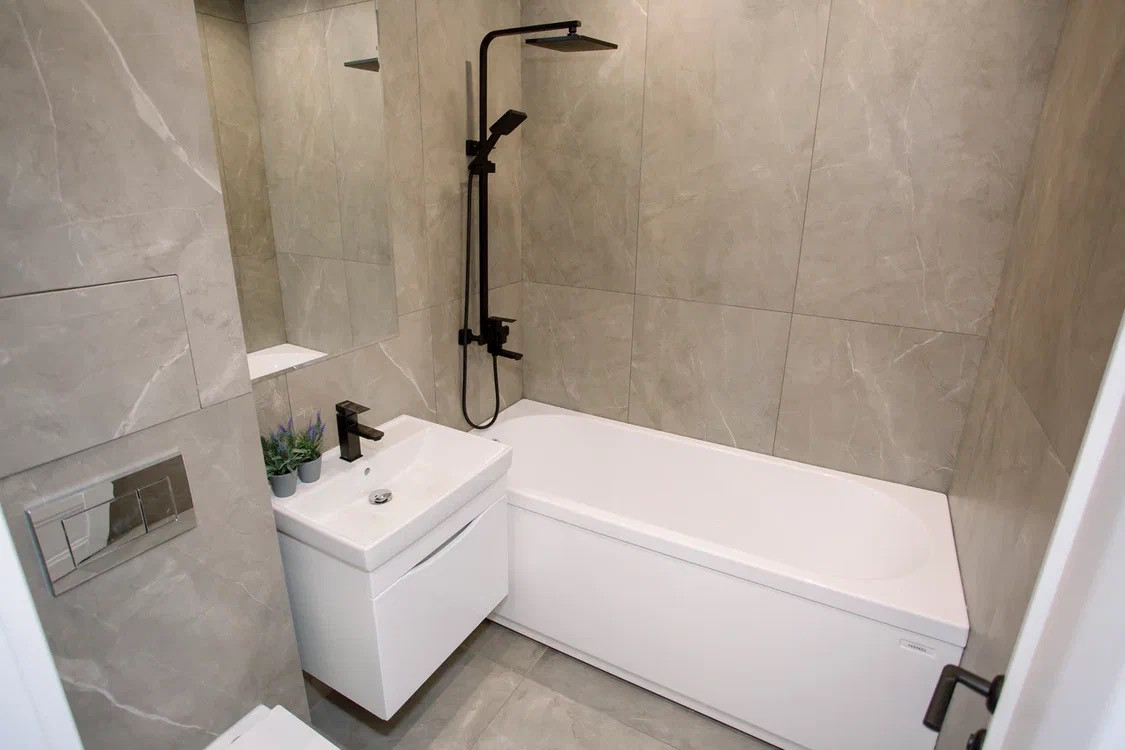 - Ванна керамогранит Kerama-marazzi, хорошая сантехника.