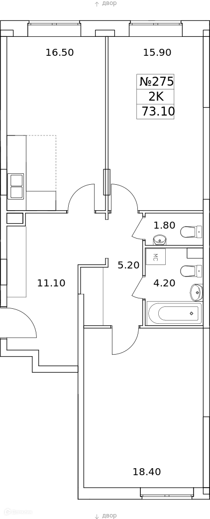 Общая площадь 73.1 м2