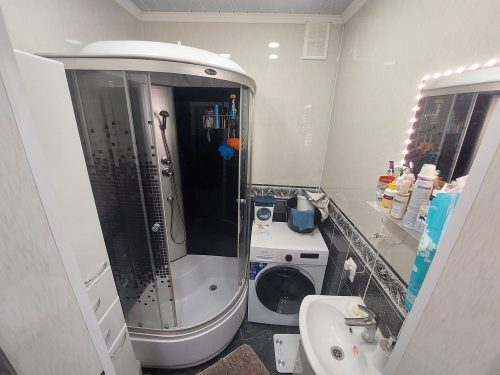 В квартире сделан качественный и стильный ремонт. Заменены все трубы. Установлена новая сантехника. Санузел в кафеле. В ванной установлена душевая кабина. Качественные межкомнатные двери. На полу ламинат.