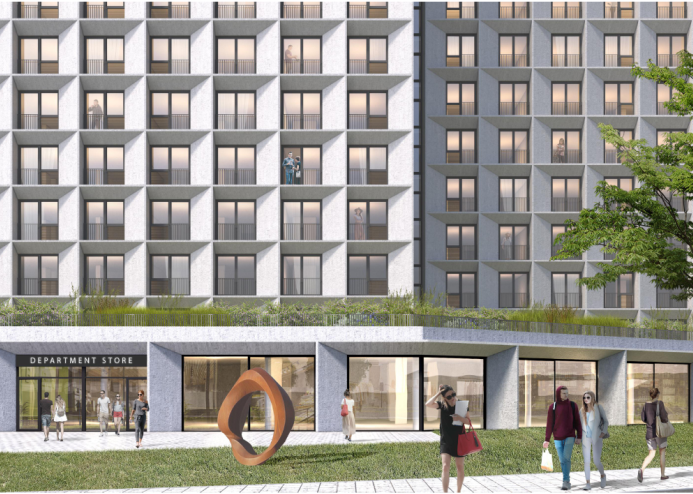 Эстетичный, долговечный фасад с технологией шумопоглощения, авторский проект от Григория Дайнова.