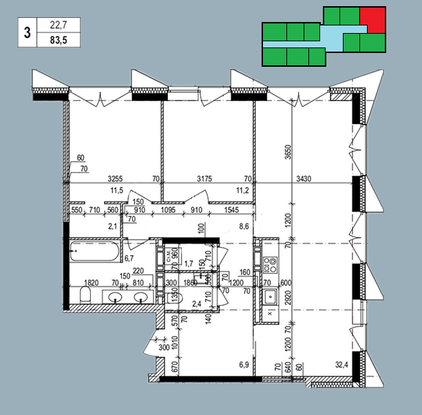 Общая площадь 83.5 м2