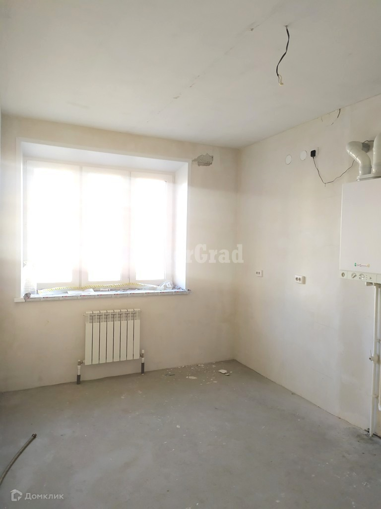Квартира укомплектована сантехникой, электророзетками, установлены двери. Стены выровнены и оштукатурены.
