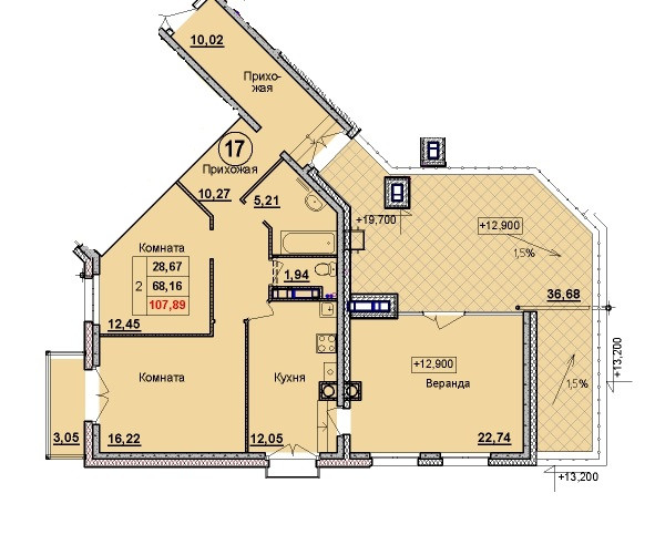 Общая площадь 107.89 м2