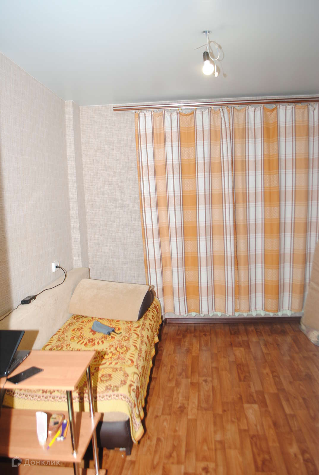 Удачная планировка: комната, площадю 10,5, кухня 4 кв.м. Окна выходят во двор дома. Санузел совмещенный в кафеле. Натяжной потолок. В комнате линолеум. На кухне и в санузлу на полу плитка. Имеются: интернет, счетчики горячей и холодной воды, домофон. Тихий и спокойный двор, детская площадка, наземный паркинг.
