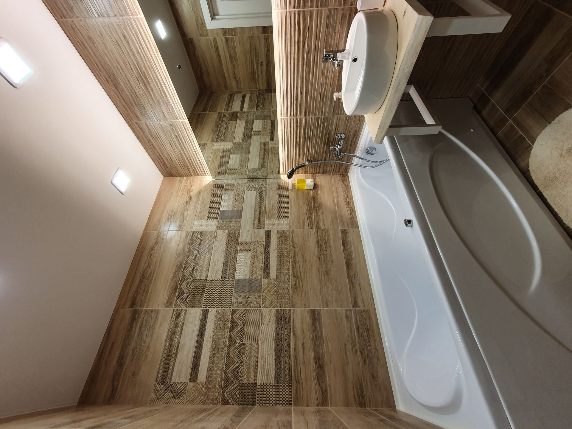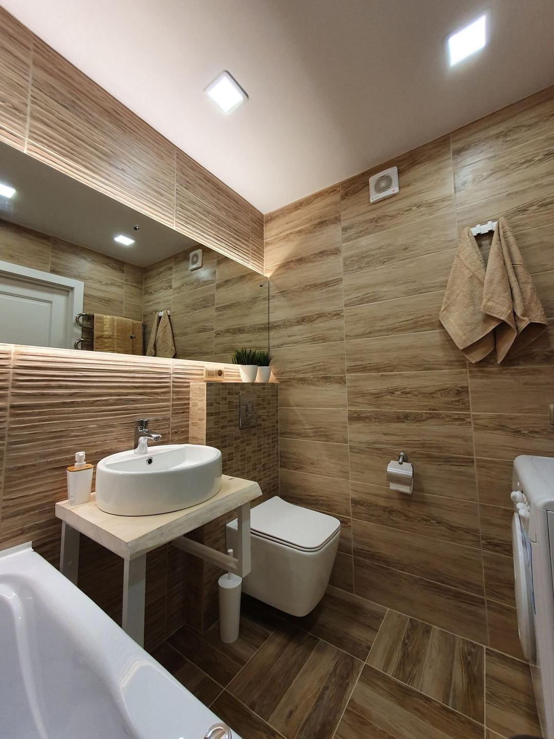 - санузел с гидромассажной ванной и подвесным унитазом.   два режимами освещения.
