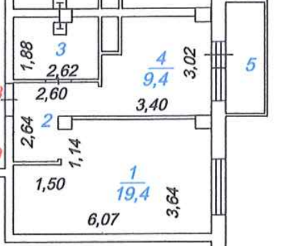 Жилая площадь 19.4 м2