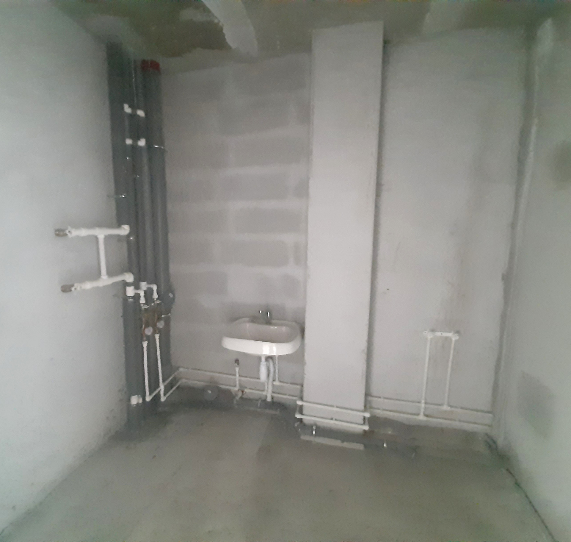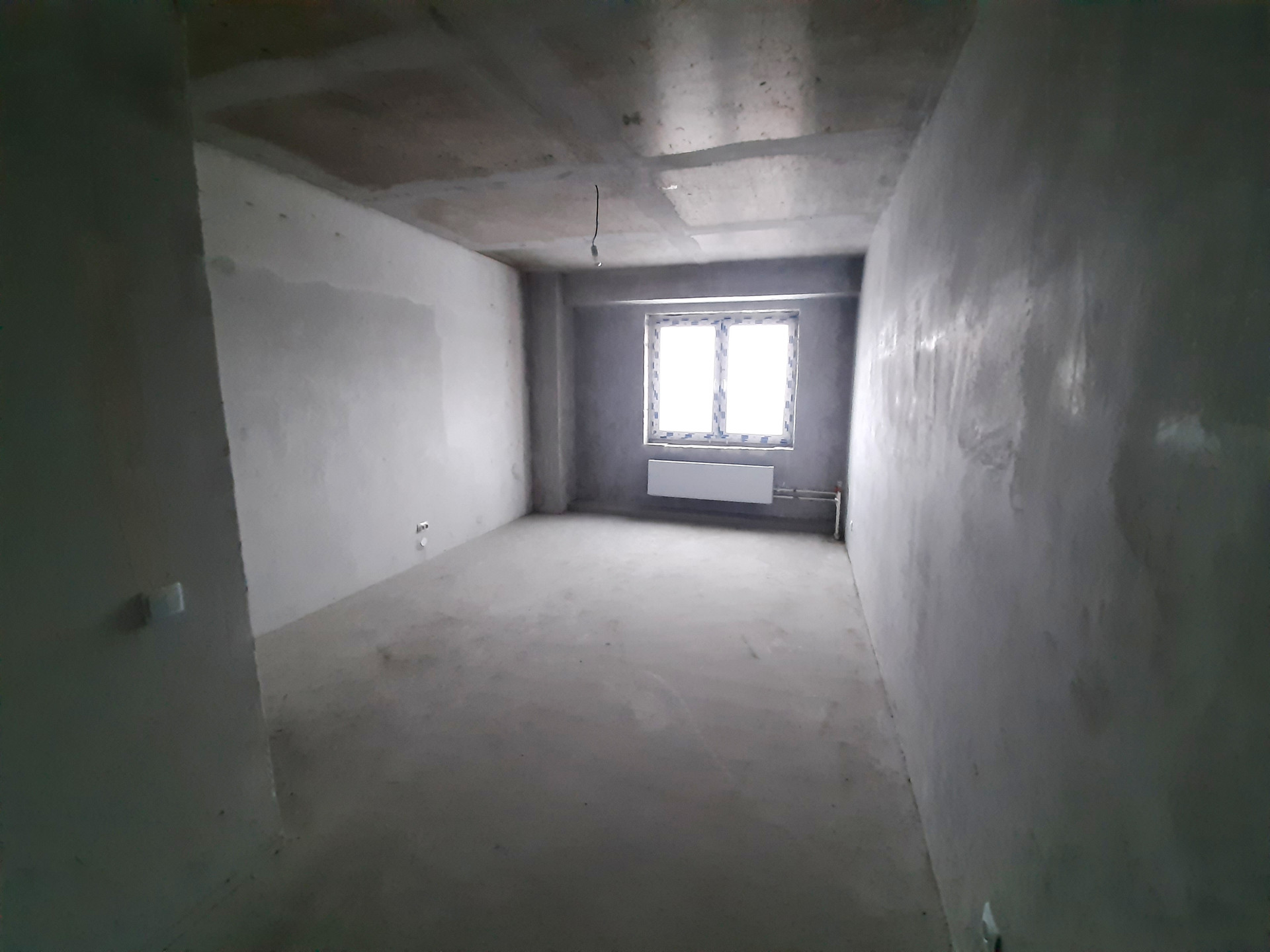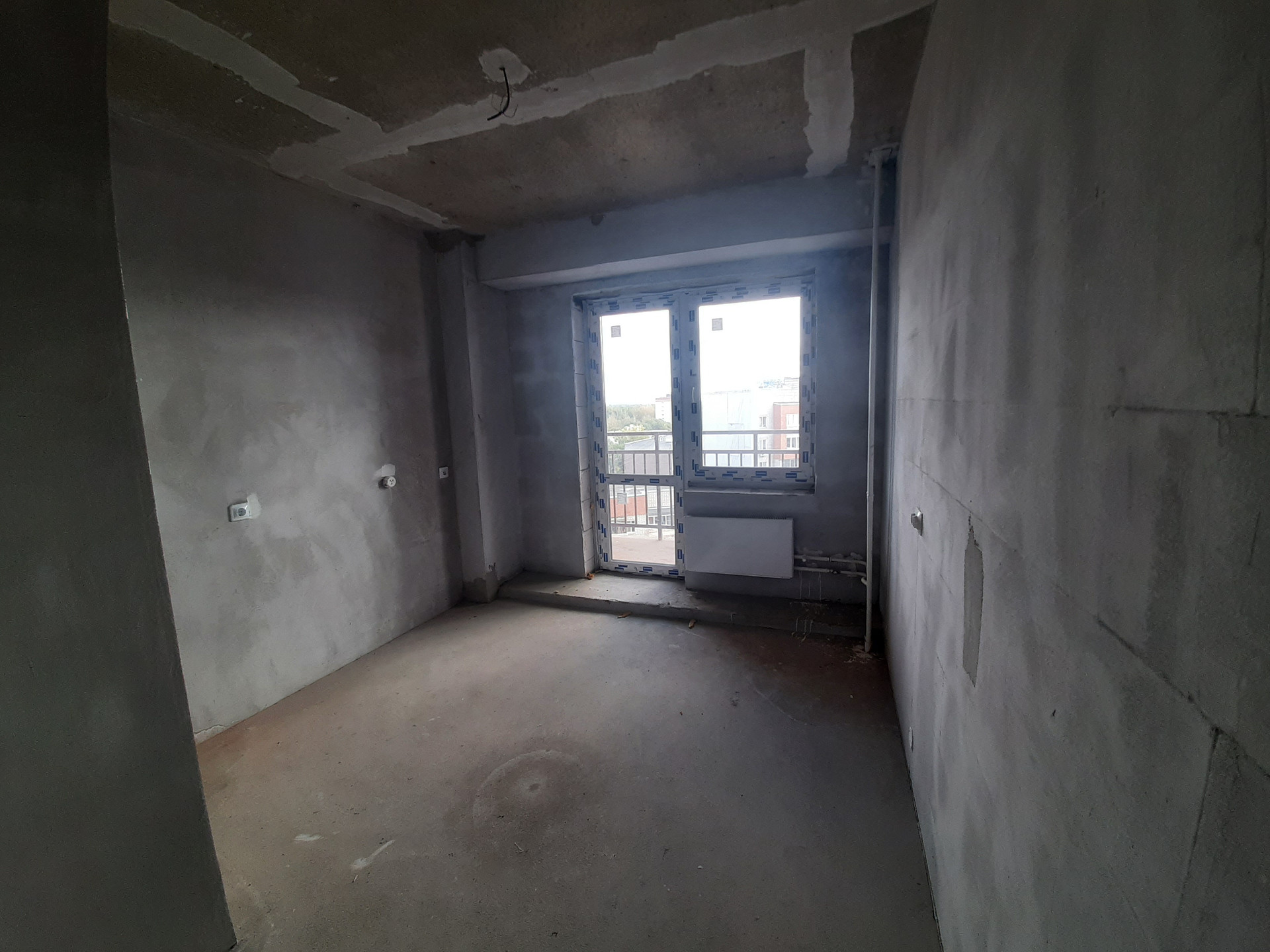 В квартире установлена железная входная дверь, установлена дверь в санузел. Ровный пол и ровные серые стены. Разводка электрики.