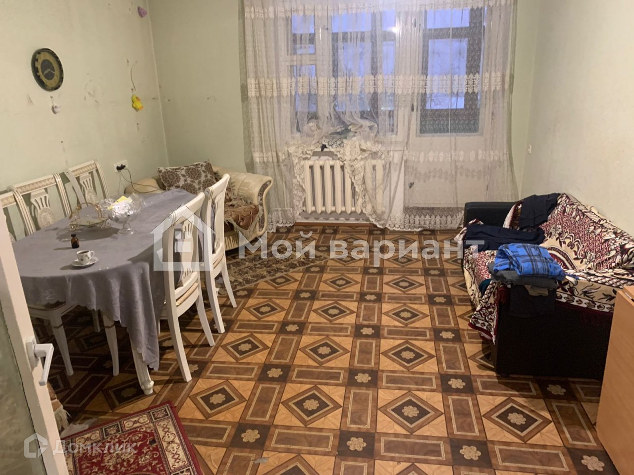 Имеется общая парковка прямо напротив окон квартиры.