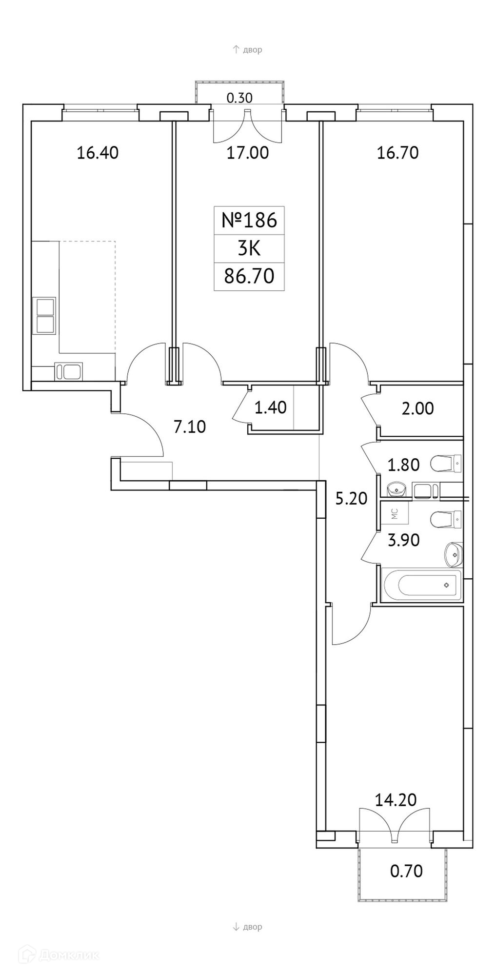 Общая площадь 86.7 м2