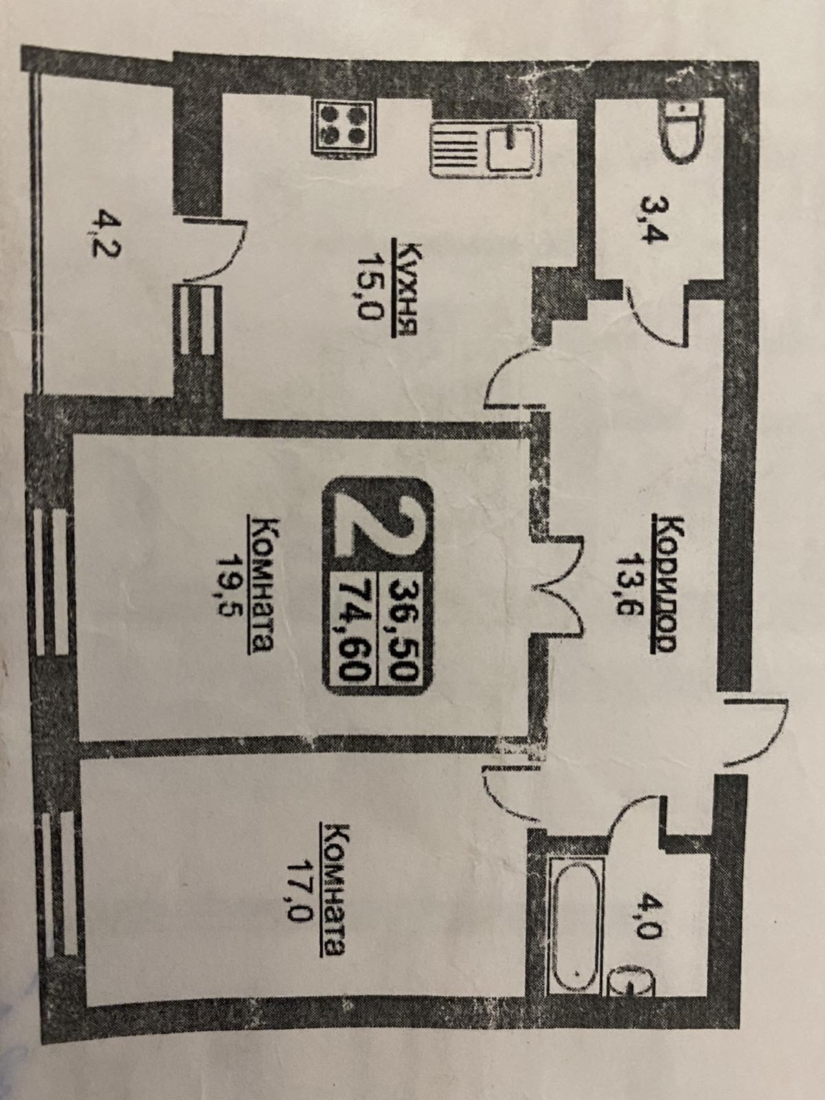 Общая площадь 74.6 м2