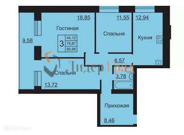 Общая площадь 80.66 м2