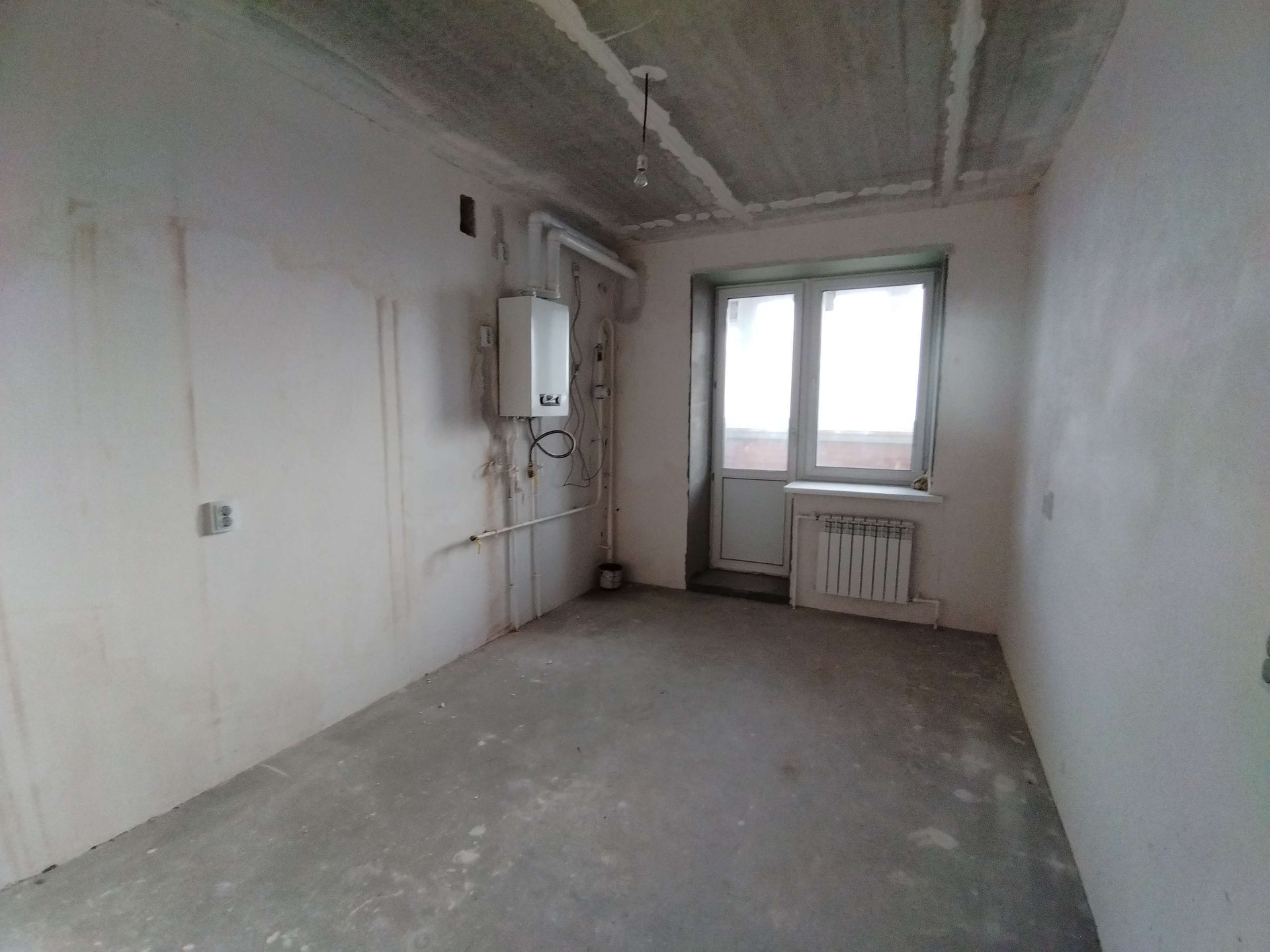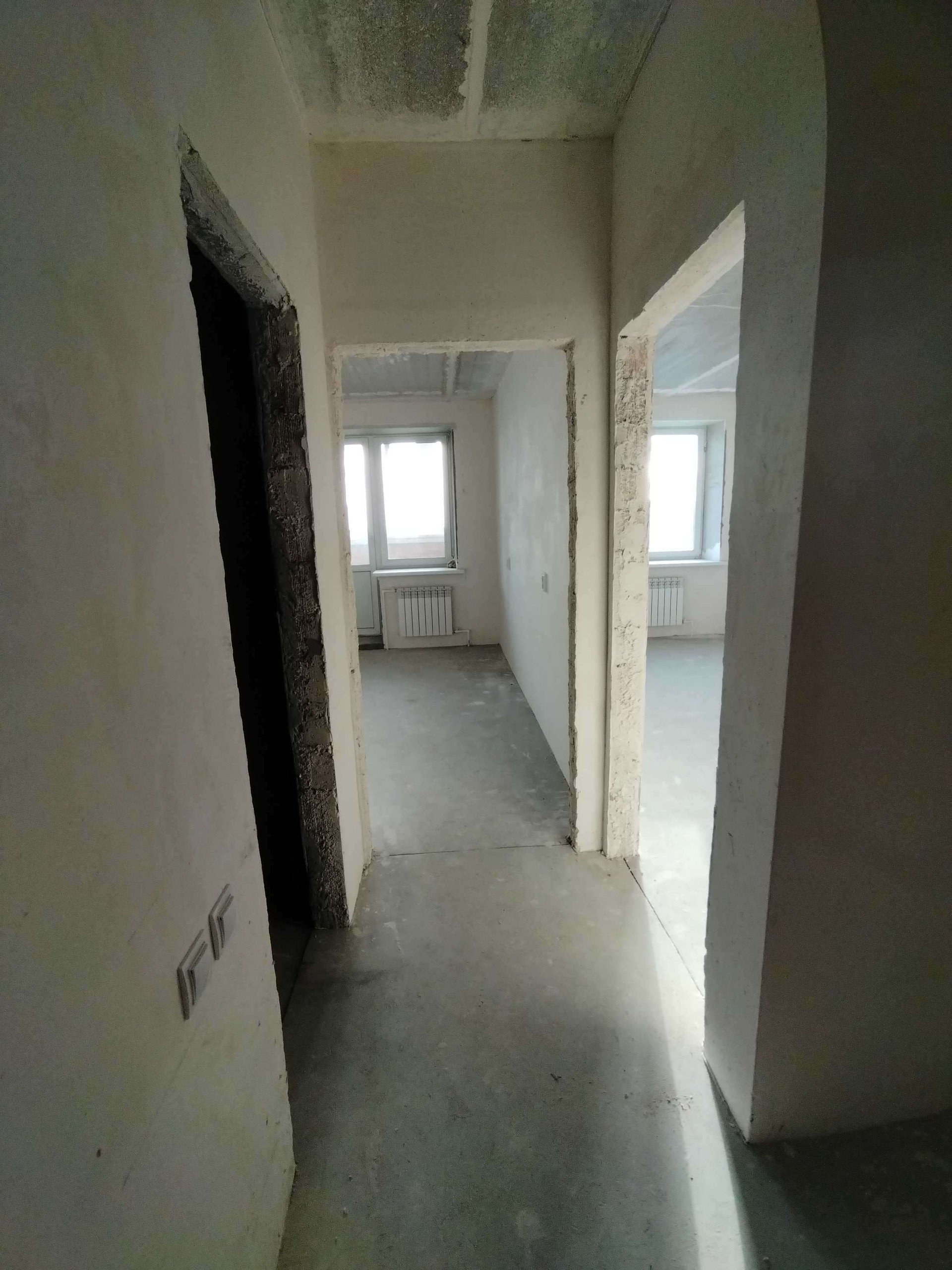 Балконы застеклены. Пластиковые трубы. Квартира с чистовой отделкой, пол бетон выровнен, капитальные стены отштукатурены, разведено электричество. Так же сделана разводка труб под сантехнику. В шаговой доступности вся инфраструктура.