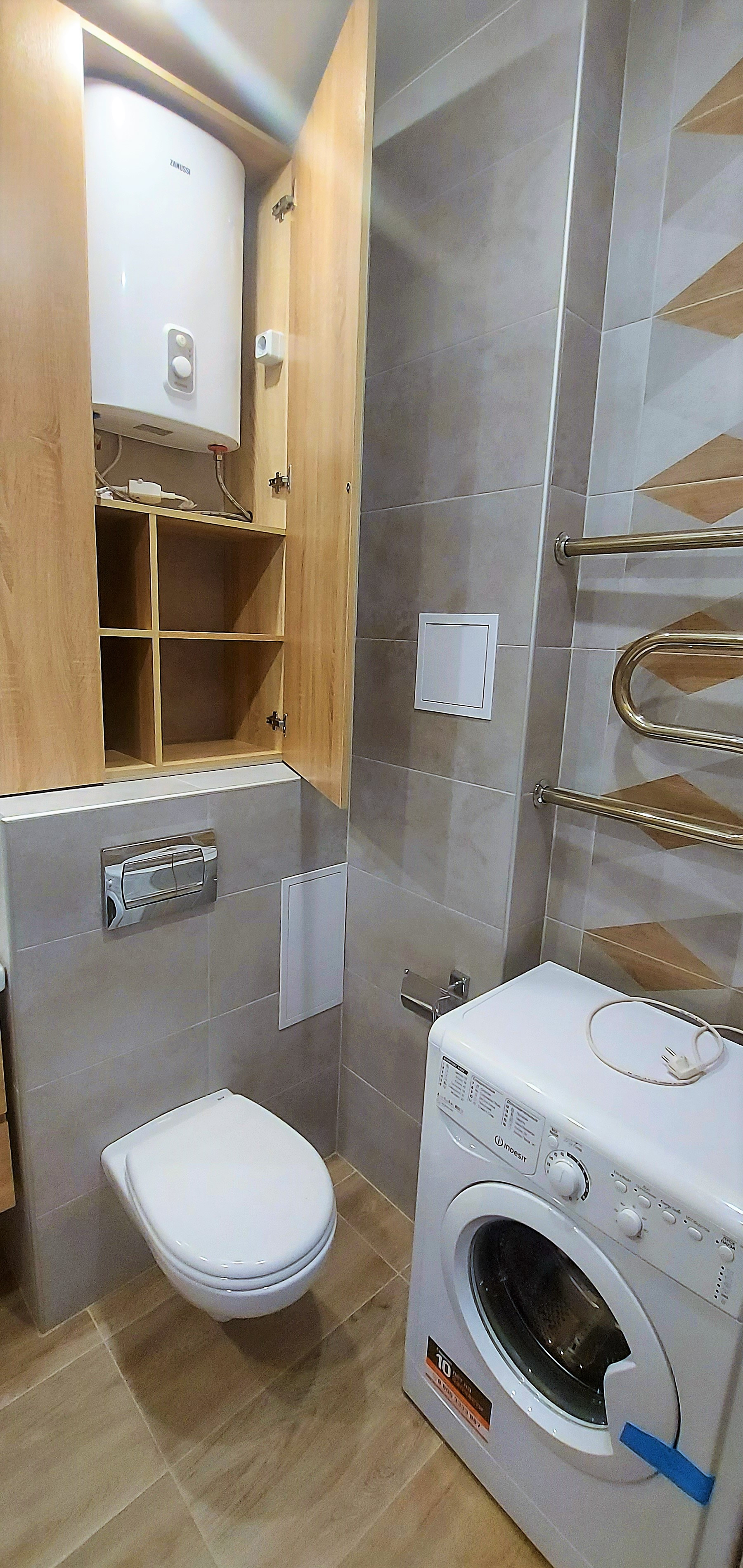 - установлен кондиционер, накопительный водонагреватель, «теплый пол» в ванной;