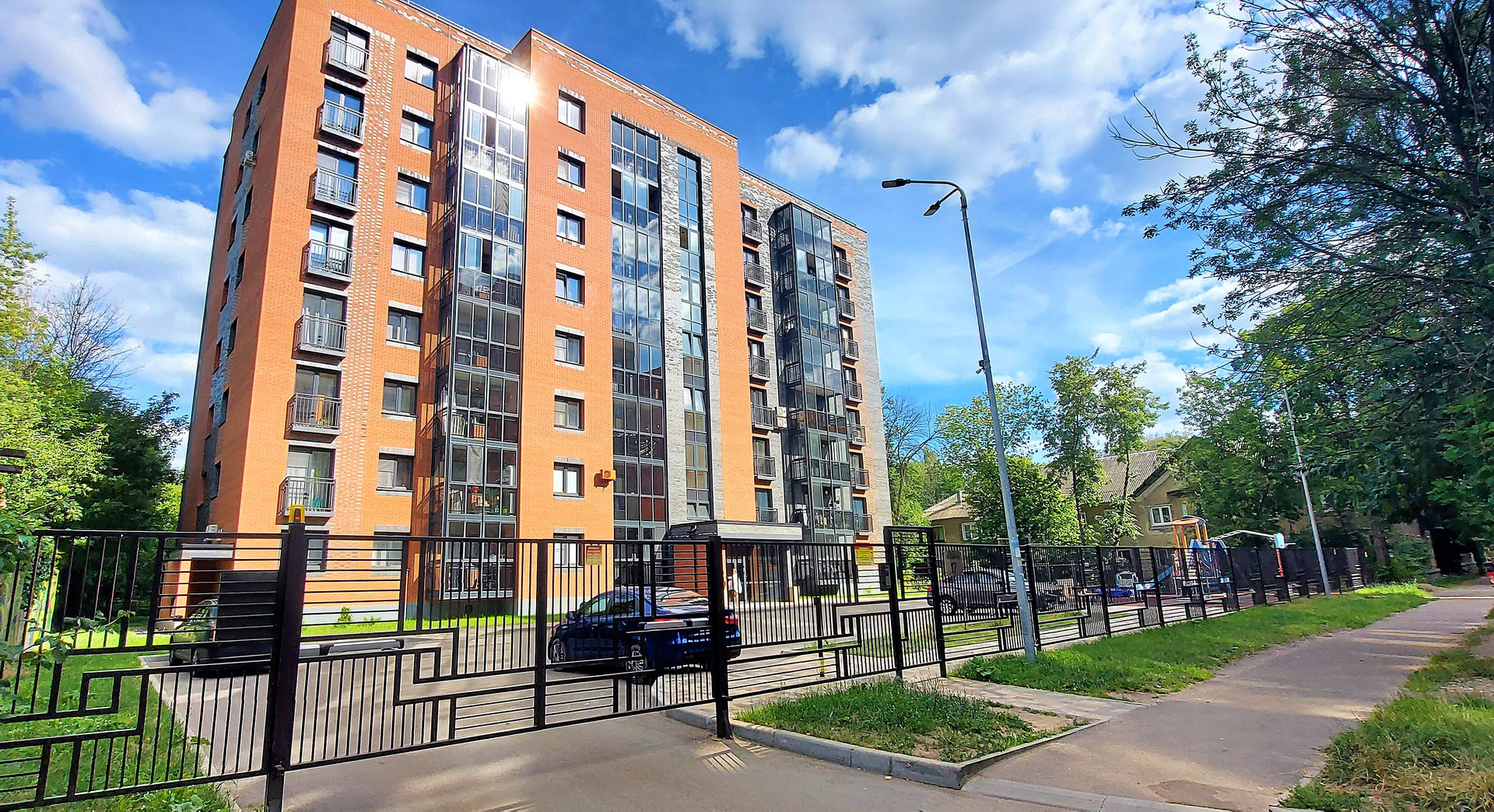 - полностью из керамического кирпича - исходя из совокупности характеристик (8 жилых этажей, 56 квартир, отделка подъездов, благоустроенный двор, огороженная территория, отсутстивие Газа) - дом относится БИЗНЕС Классу;