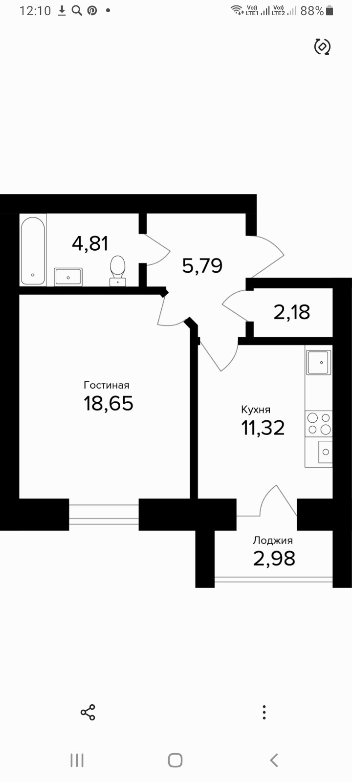 Общая площадь 44.25 м2