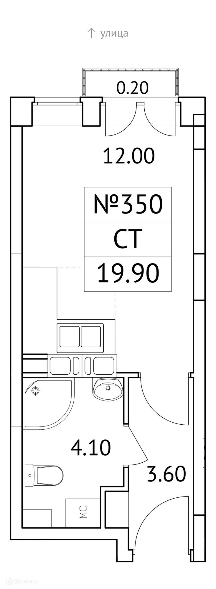Общая площадь 19.9 м2