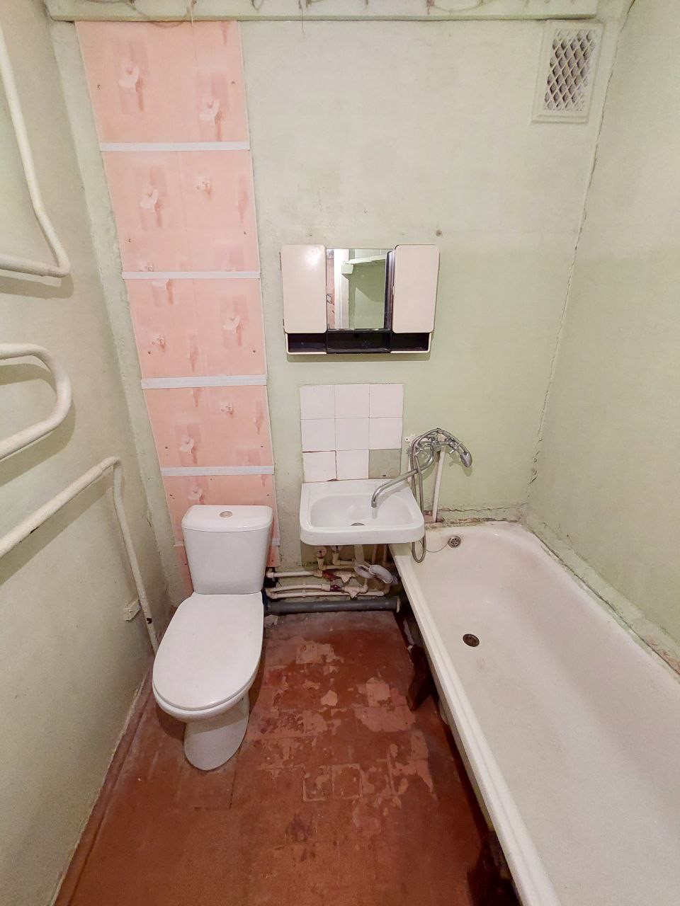 Санузел совмещённый, трубы и канализация поменяны, установлены счётчики на воду.