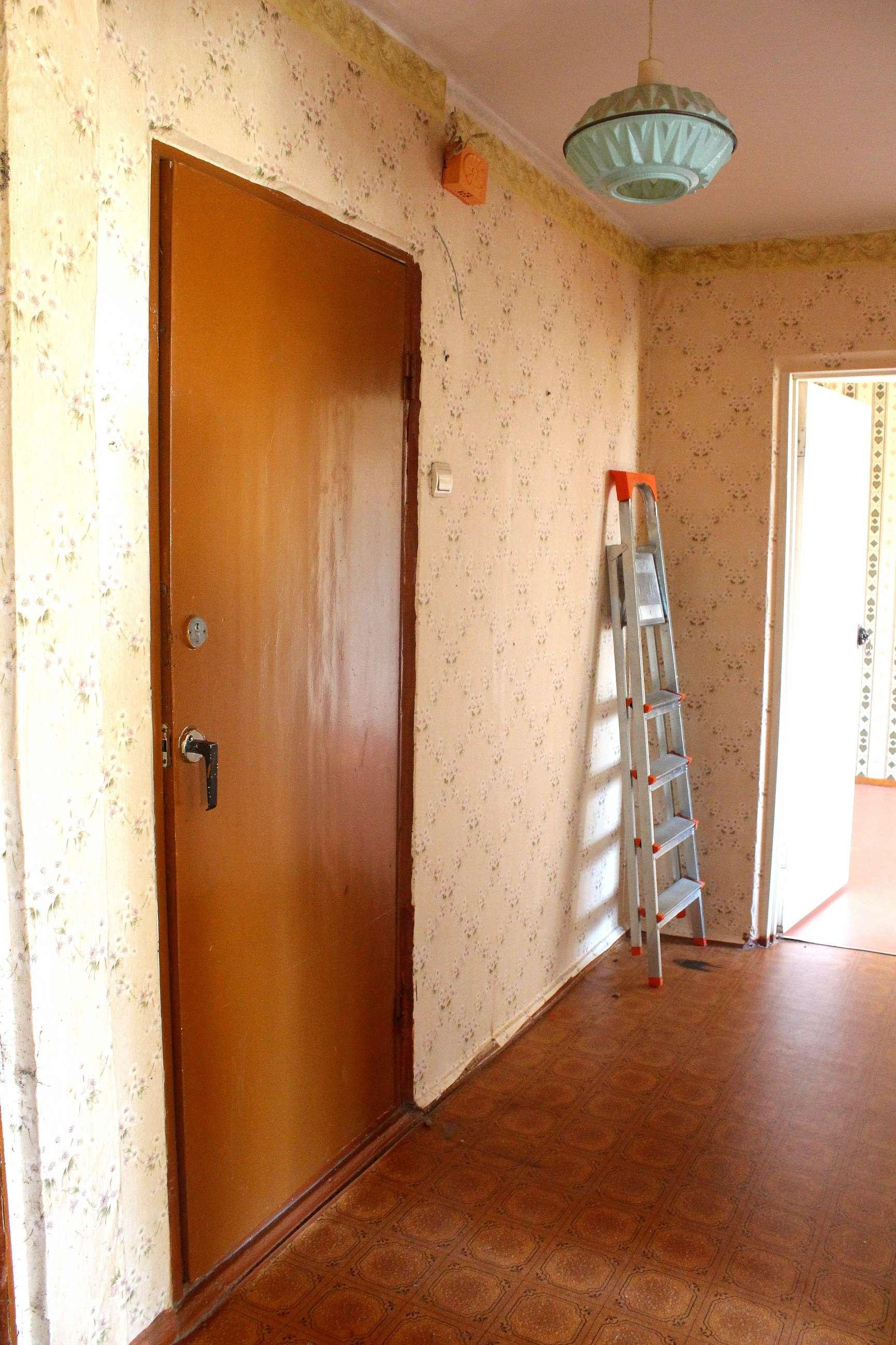 Большая комната-17,2, маленькая комната - 12,8. Кухня 9. Есть большой встроенный шкаф. Балкон не застеклен. Счетчики на горячей и холодной воде. Требуется косметический ремонт.
