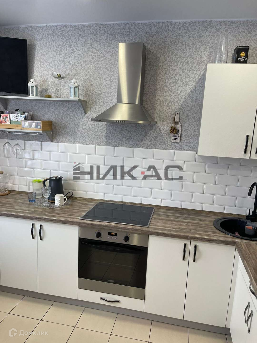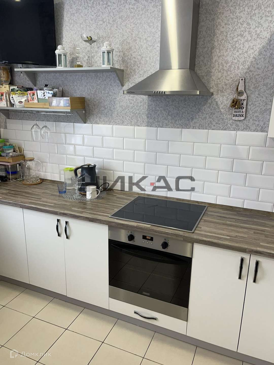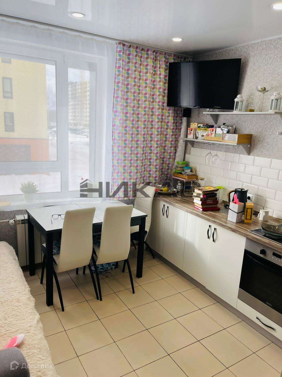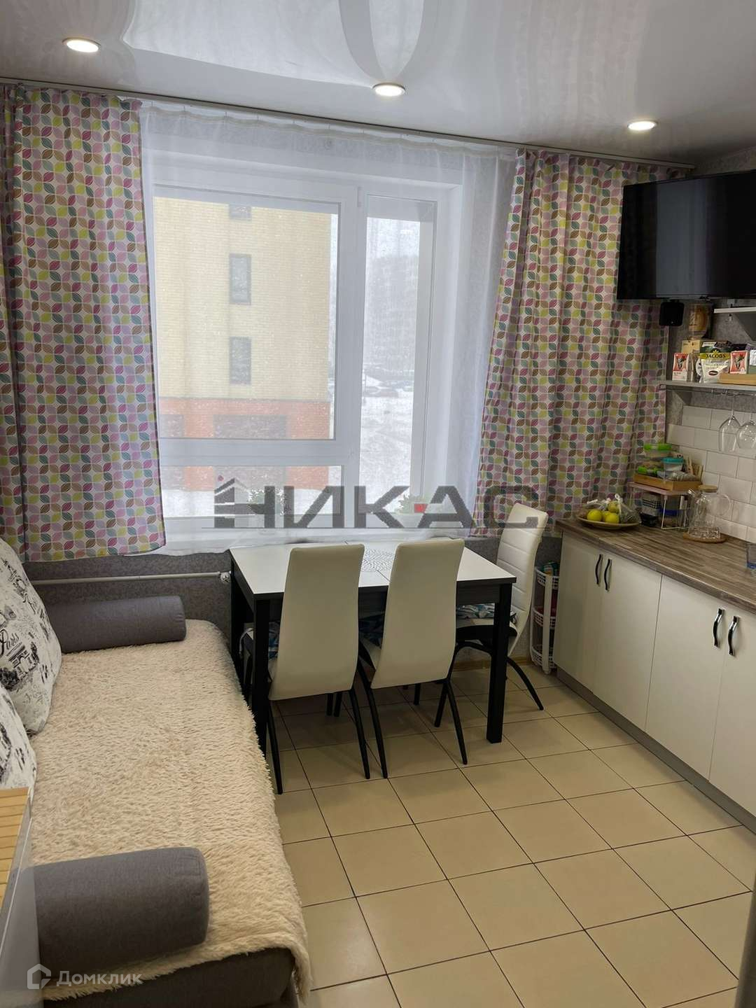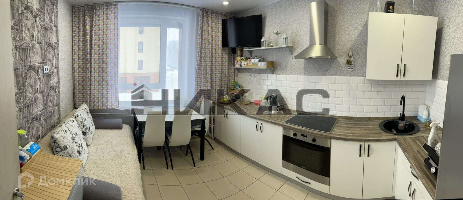 Остаётся кухонный гарнитур, бытовая техника, диван на кухне.