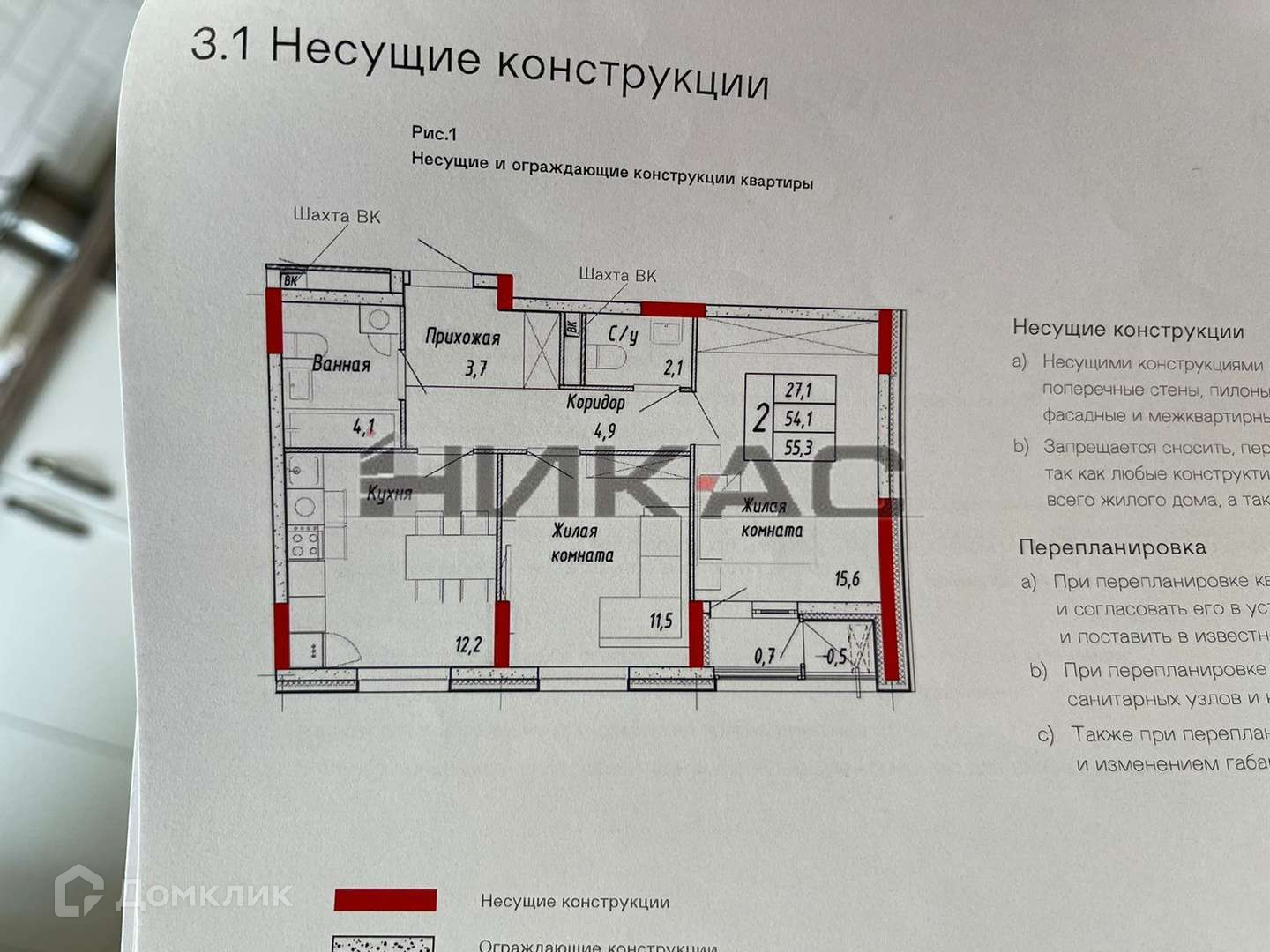 Общая площадь 55.3 м2
