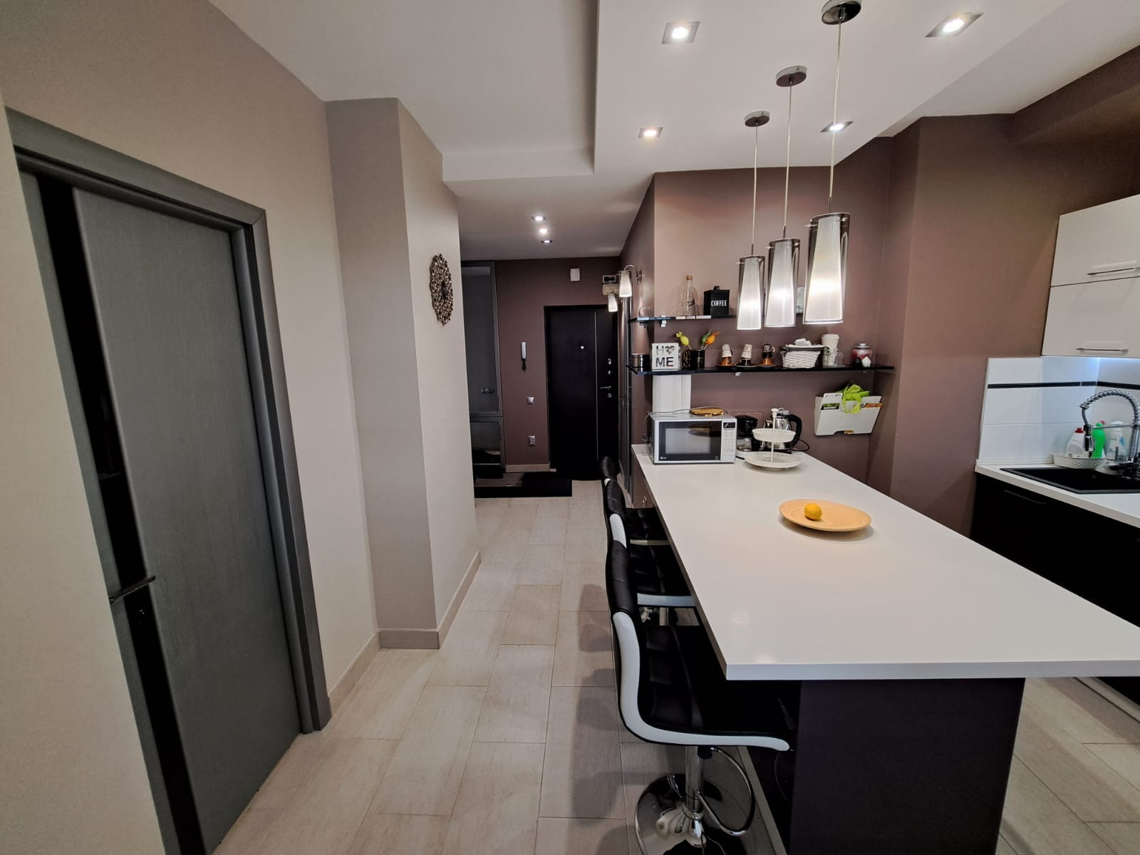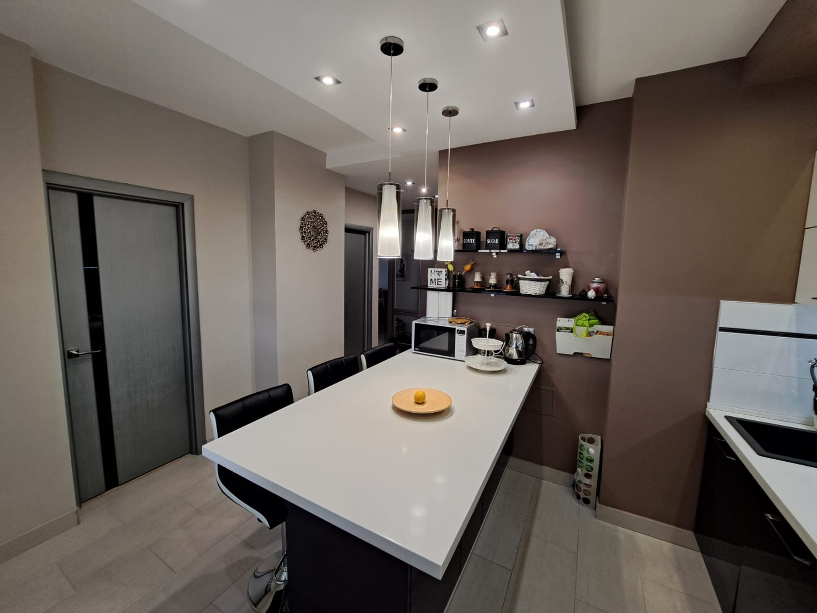 Общая площадь: 72,50 м2, + балкон 4,44м2 и лоджия 4,02м2. Удачная планировка, которая позволяет рационально использовать пространство. Пол керамогранит и паркетная доска, потолок гипсo картон. Произведена замена стояков на ПВХ.