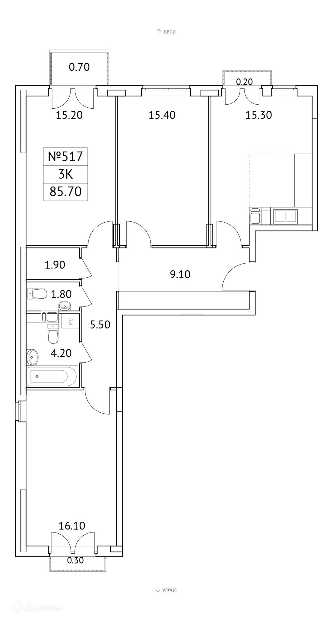 Общая площадь 85.7 м2