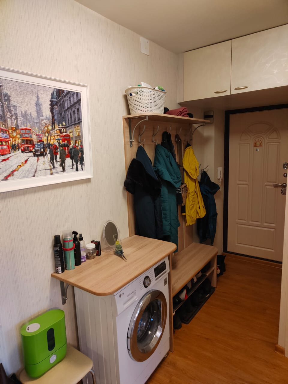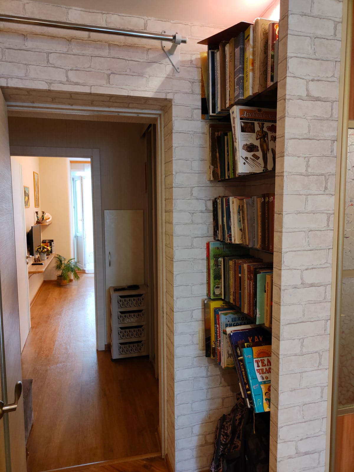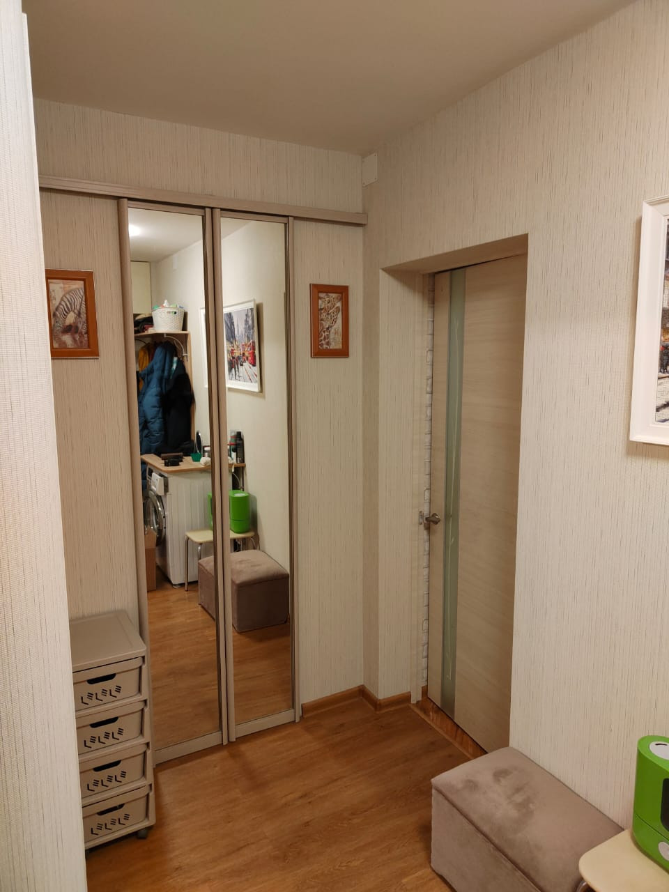 Из мебели остается кухонный гарнитур, прихожая, встроенный шкаф в детской, холодильник.