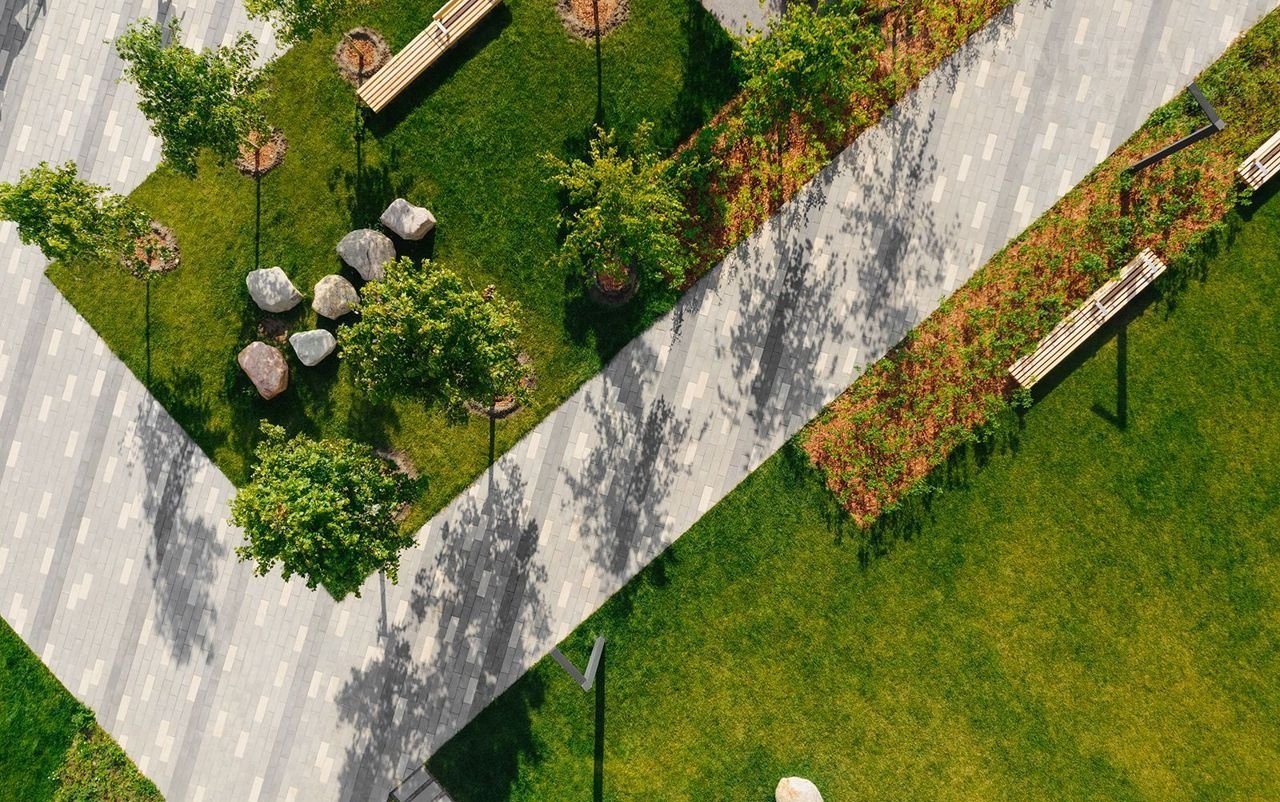 В домах жилого комплекса спроектированы просторные подъезды с высокими потолками, панорамными окнами и двумя входами на уровне земли, без ступеней и пандусов. Придомовая территория заслуживает особого внимания, она оборудована детской площадкой, спортивной площадкой, зонами отдыха, здесь каждый найдёт уголок именно для себя. В комплексе осуществлена концепция двор без машин - специально организованные парковочные места размещены за пределами двора. Рядом находится парковая зона - прекрасное место для прогулок на свежем воздухе.