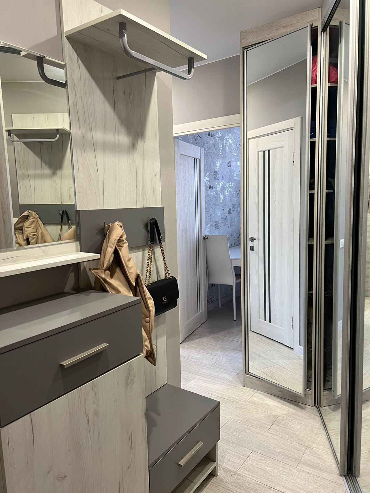 Квартира с хорошим ремонтом, остаются все шкафы в коридоре, прихожая, вместительный шкаф в большой комнате, кухонный гарнитур с новой газовой плитой, холодильник, микроволновка, стиральная машина, двух-спальная кровать (180х200), водонагреватель.