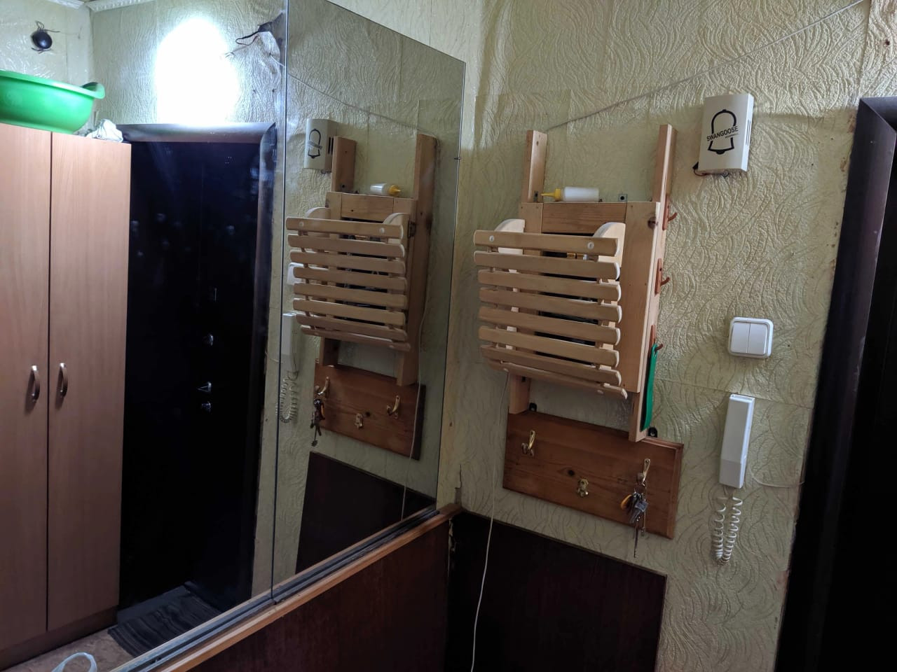 Окна квартиры выходят в тихий зеленый двор.