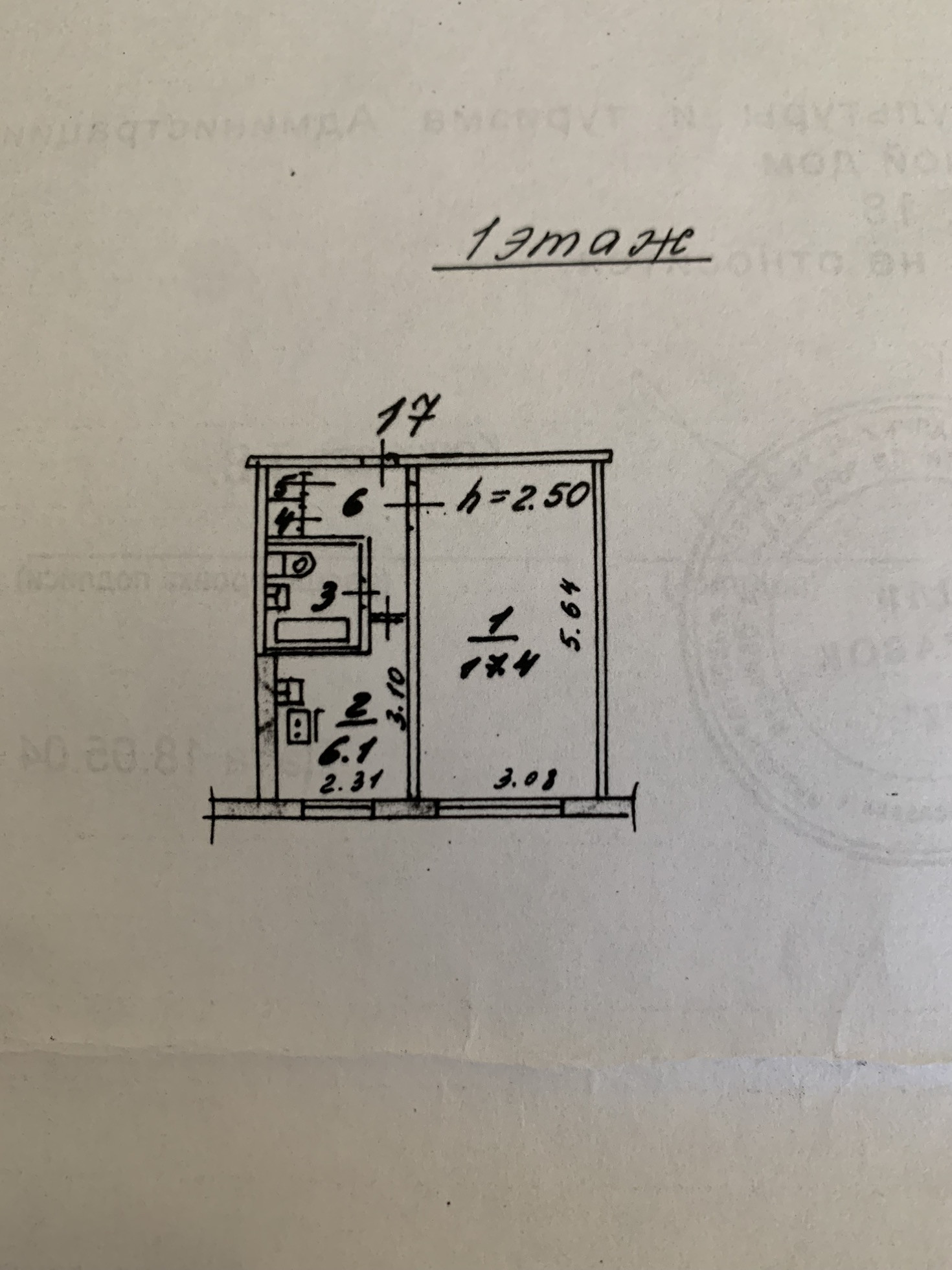 Жилая площадь 17.4 м2