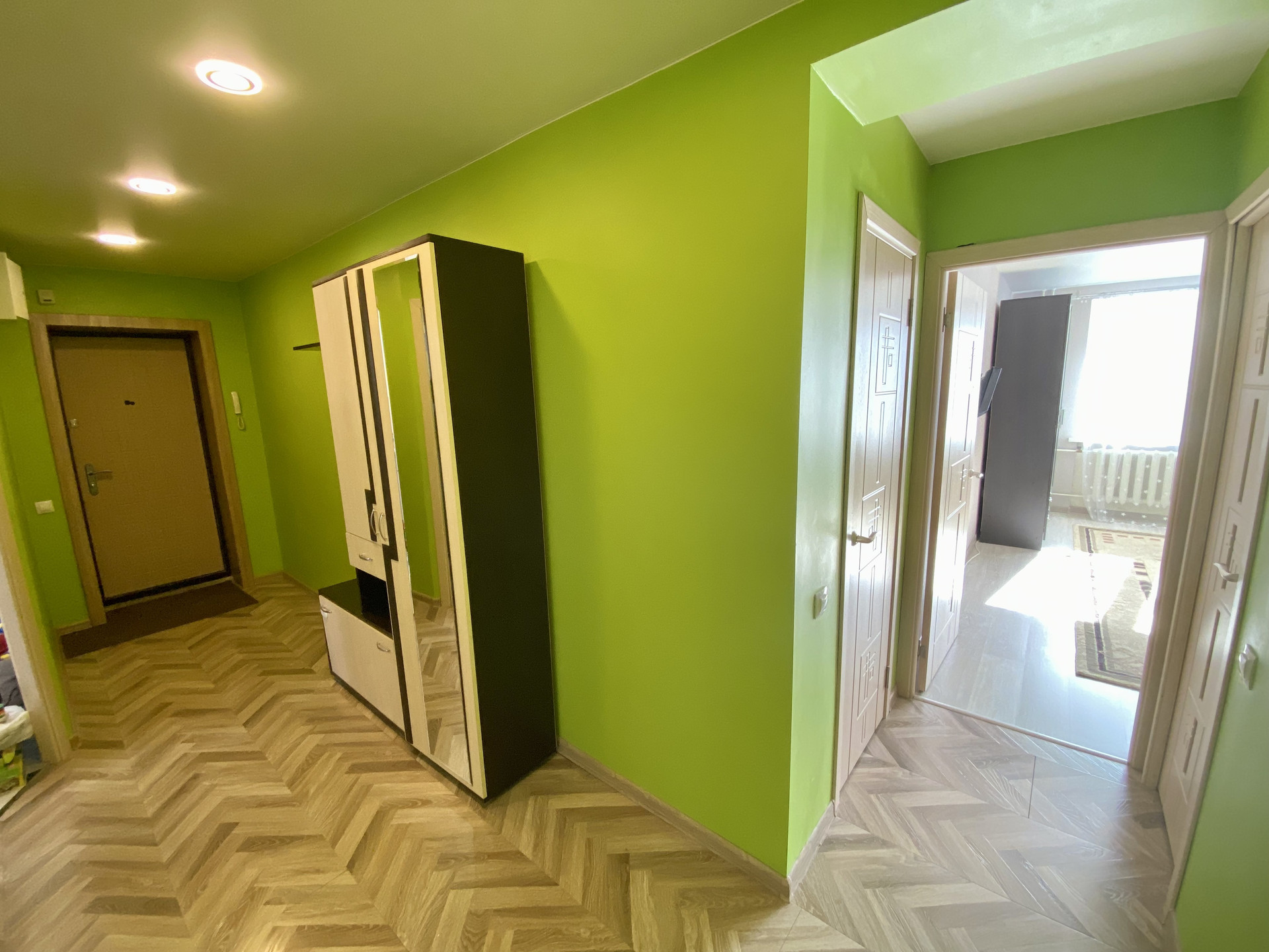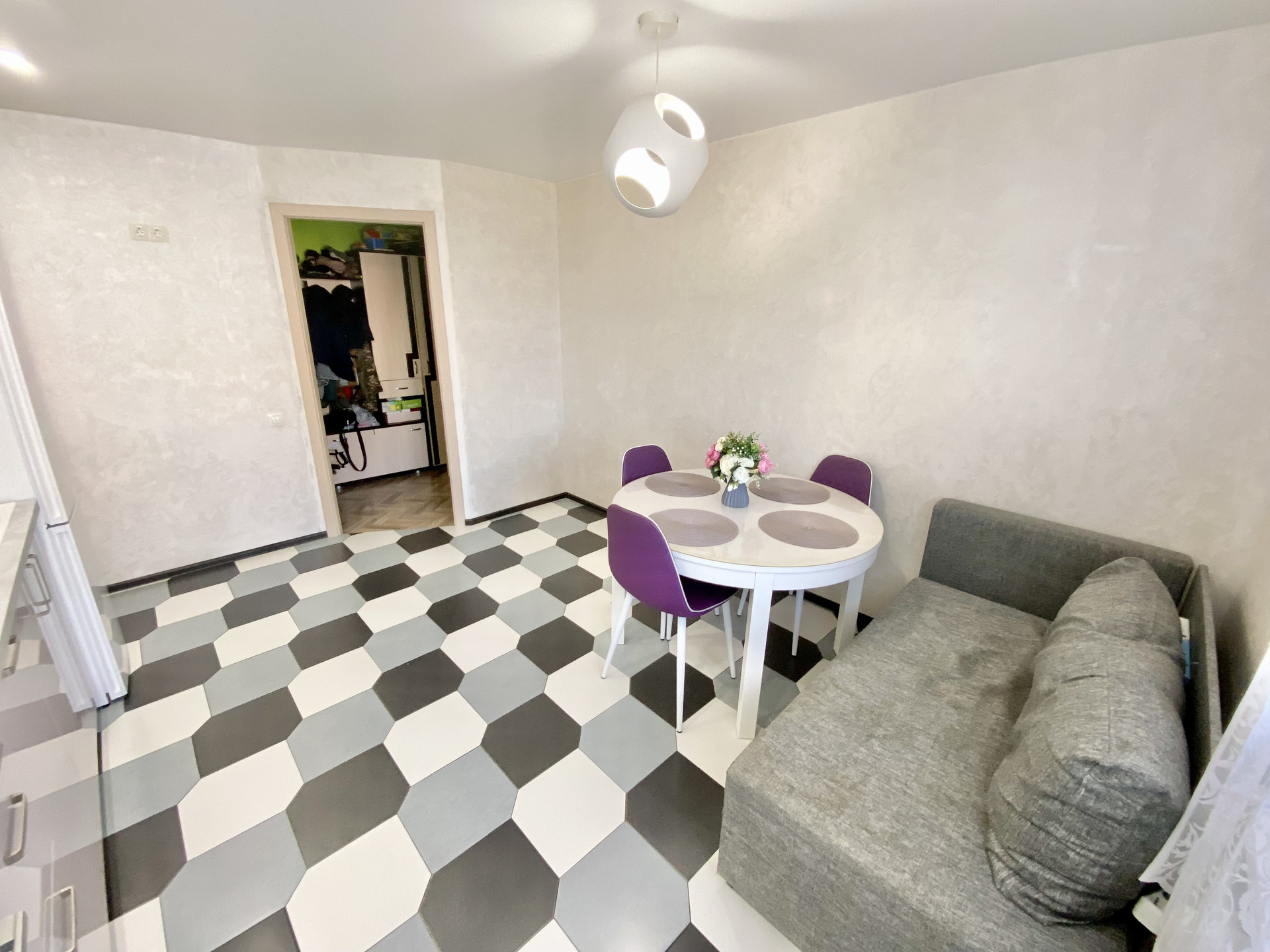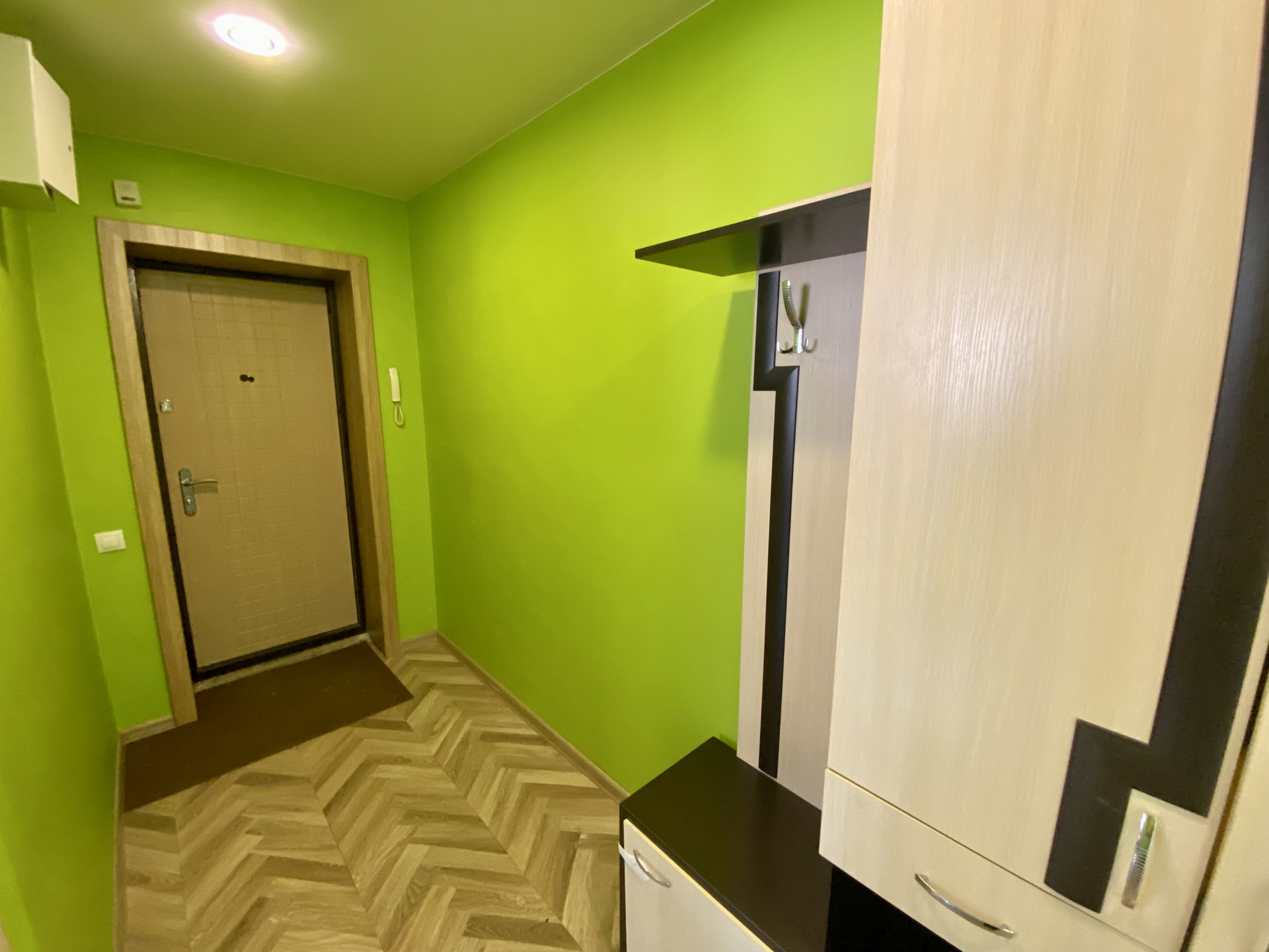 При продаже в подарок собственник может оставить кухонный гарнитур, шкаф в коридоре.