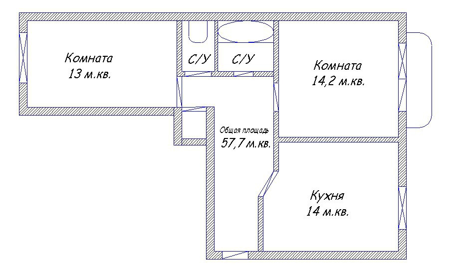 Общая площадь 57,7 м.кв. Комнаты 14,2 и 13м.кв., кухня 14 м.кв. раздельный санузел, застекленный балкон. Высокий этаж и выходящие две стороны окна, дают много света утром и вечером. Квартира реально очень светлая и солнечная. В ней очень приятно находиться. Сделан хороший косметический ремонт, а это значит вы можете сразу заехать и начать жить. Окна ПВХ, а также удаленность от шумных дорог обеспечивают тишину. Установлены счетчики воду и электричество. Дом новый, подъезды чистые, соседи все очень хорошие.
