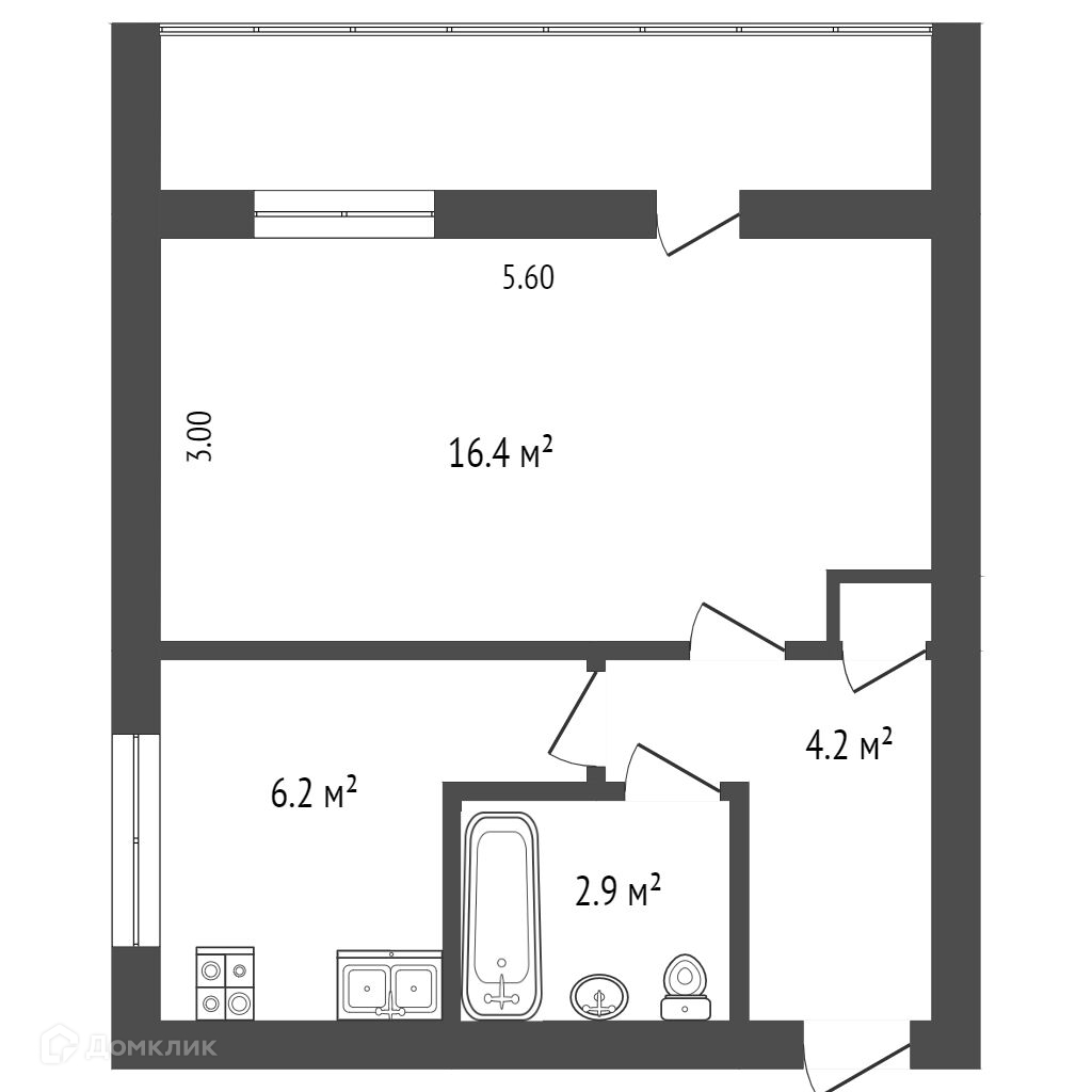 Общая площадь 30.1 м2