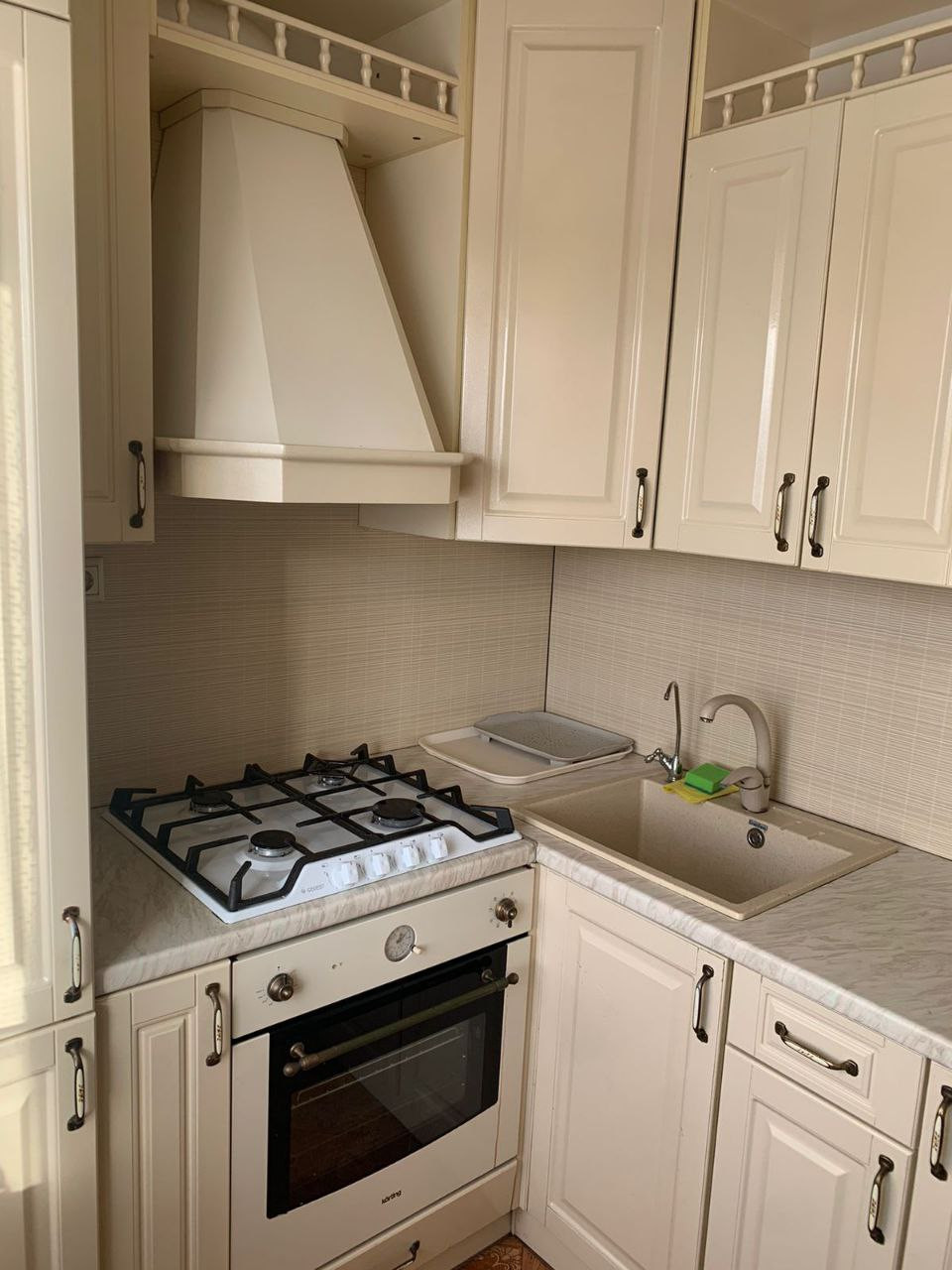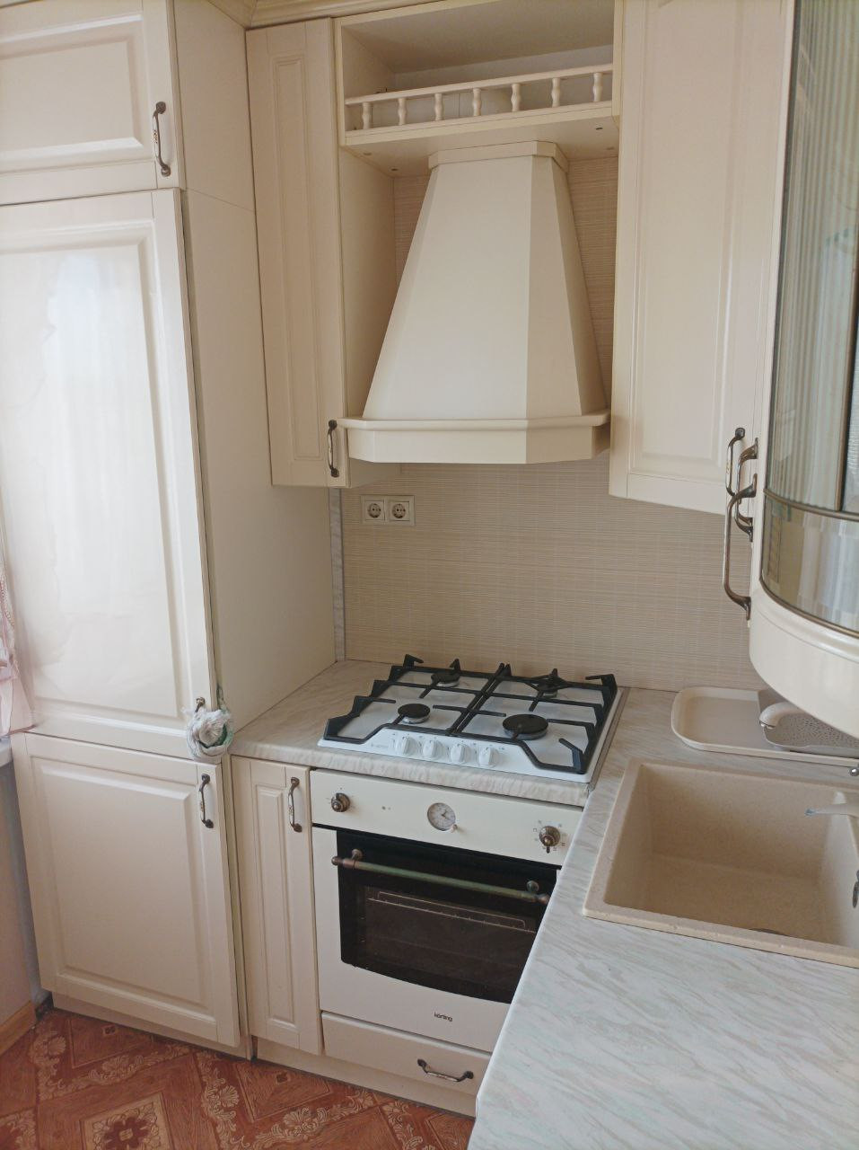 - кухонный гарнитур (сделан на заказ) со всей встроенной техникой (холодильник, духовой шкаф, варочная панель, вытяжка)